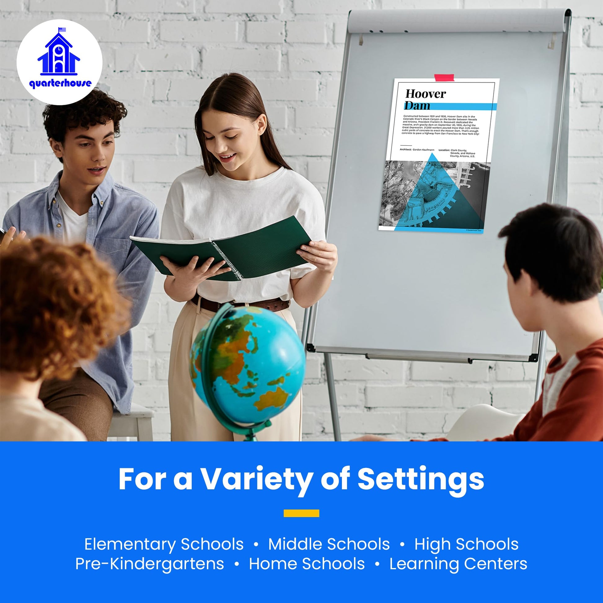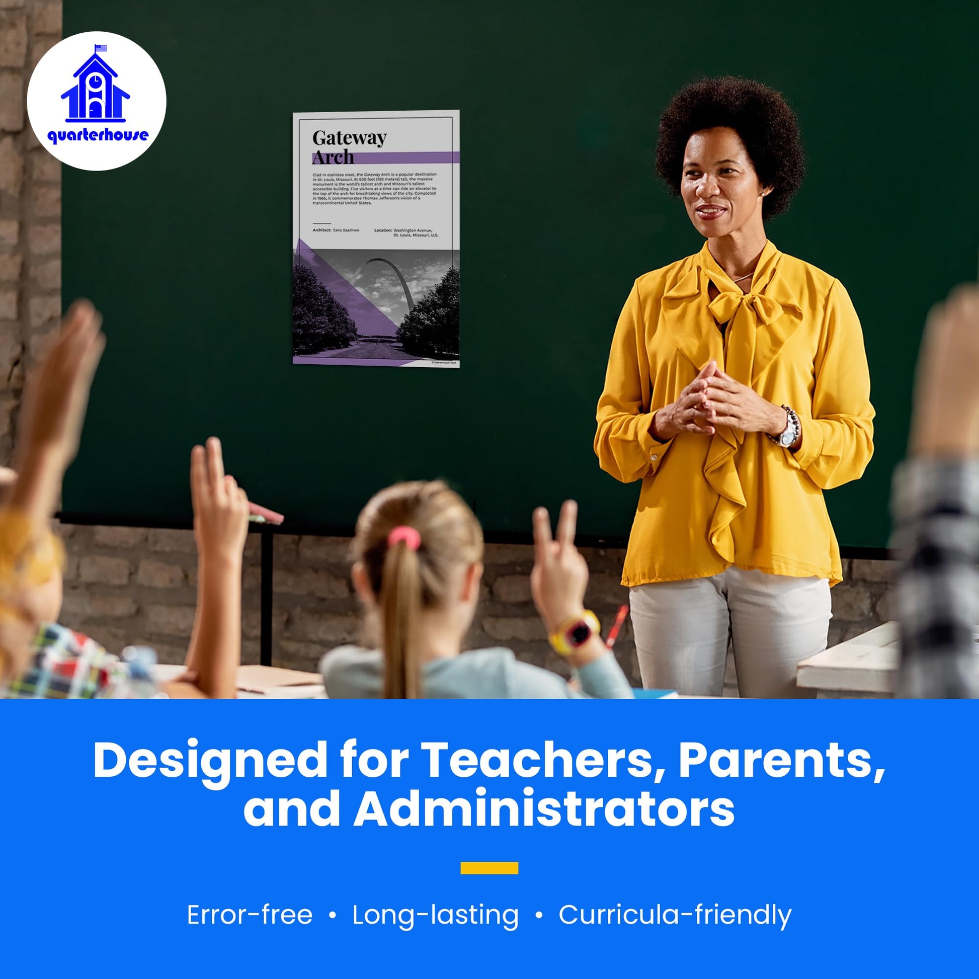 We print each poster on durable, high-quality paper that can withstand the rigors of daily classroom use. With lamination, Quarterhouse posters will last for years without fading or tearing. Additionally, the posters are easy to hang with adhesive strips or push pins, making them simple to display in your classroom.