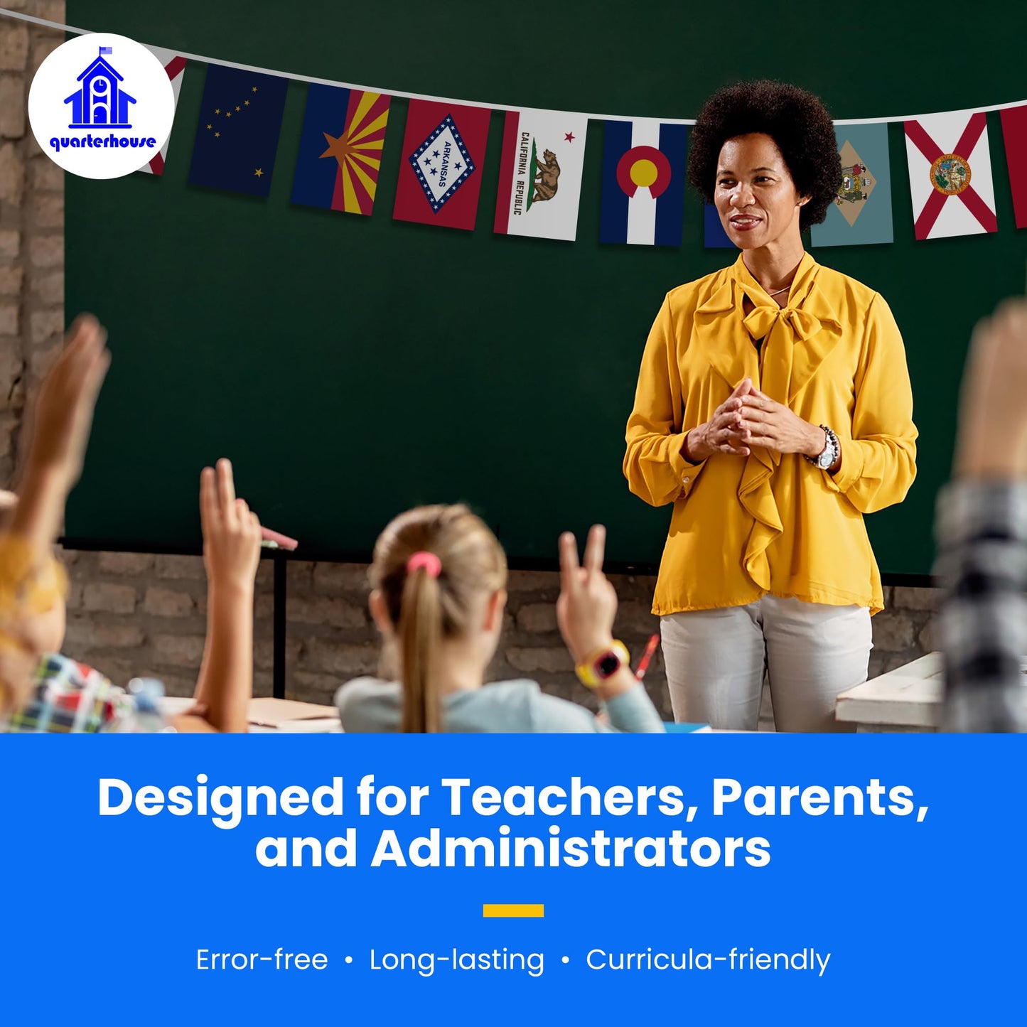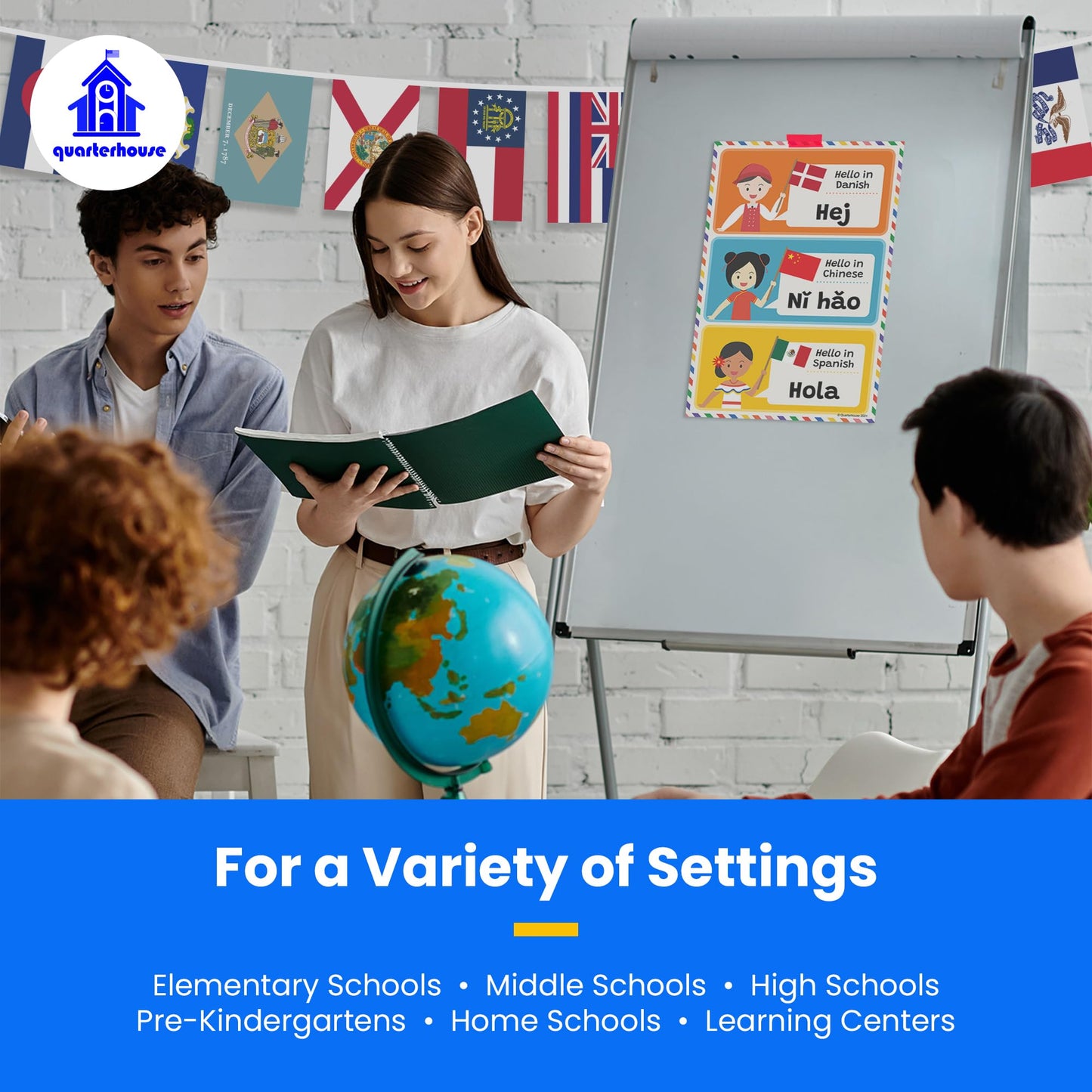 — Easy to Hang: Each flag on the bunting is attached to a sturdy cord, making it easy to hang on walls, bulletin boards, or across a classroom. The lightweight design also ensures that it won't damage walls or other surfaces.