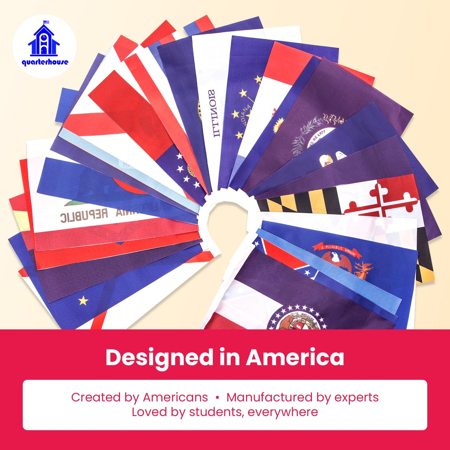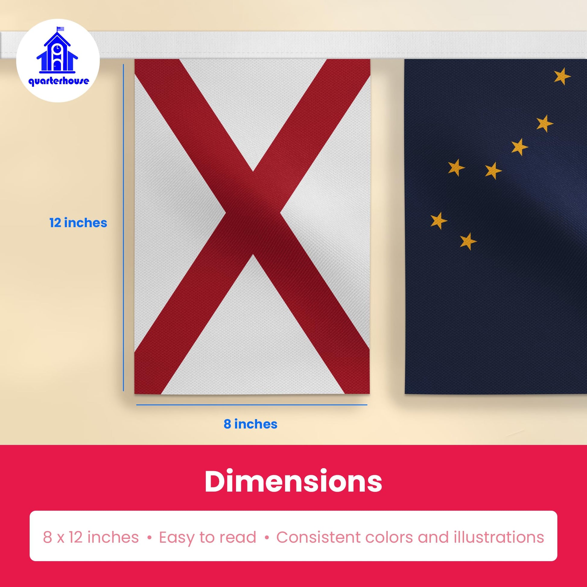Quarterhouse American State Flags - 25 States (Alabama-Missouri) Per String - Polyester, 8 x 12 Inches