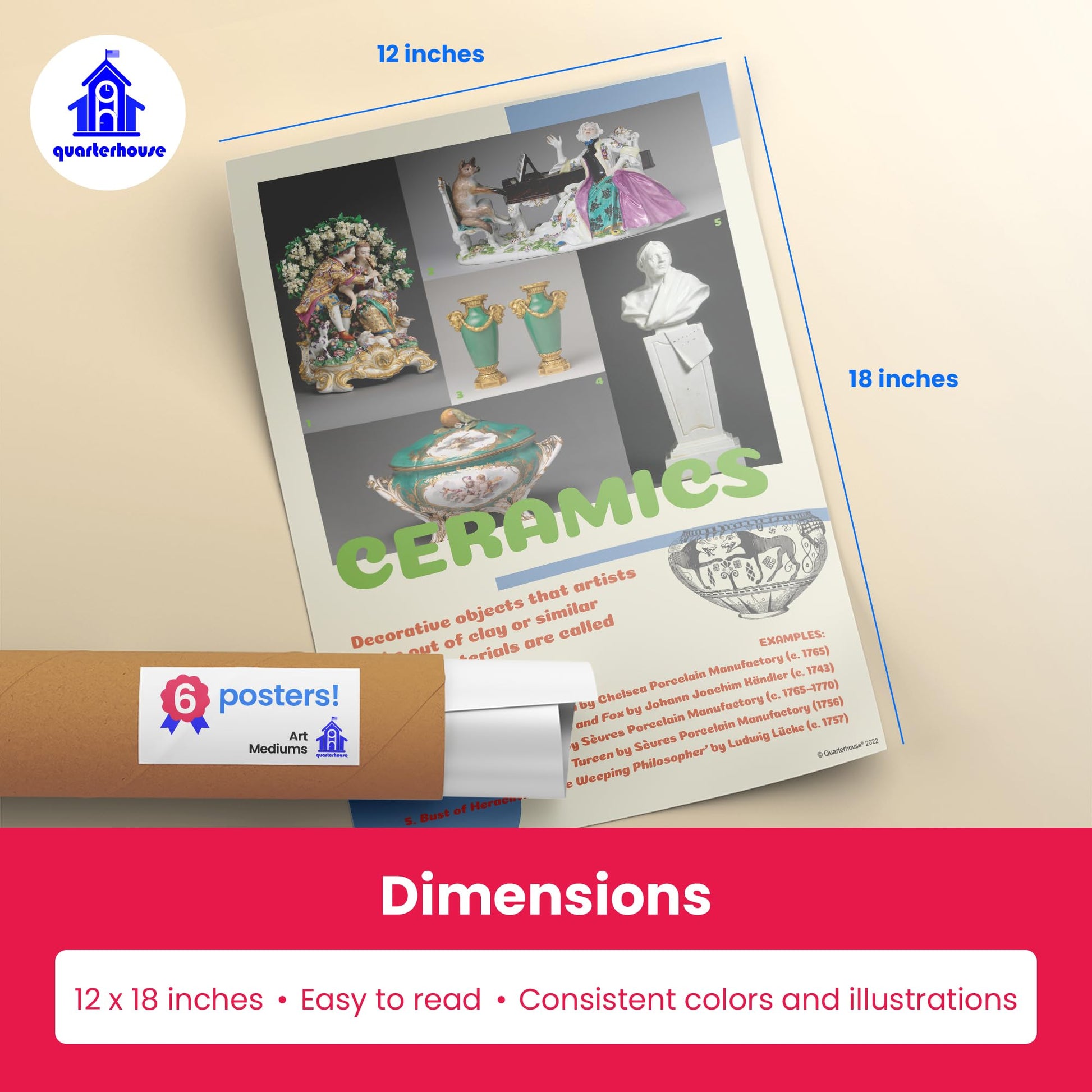 Quarterhouse Art Mediums Poster Set, Art Classroom Learning Materials for K-12 Students and Teachers, Set of 6, 12 x 18 Inches, Extra Durable