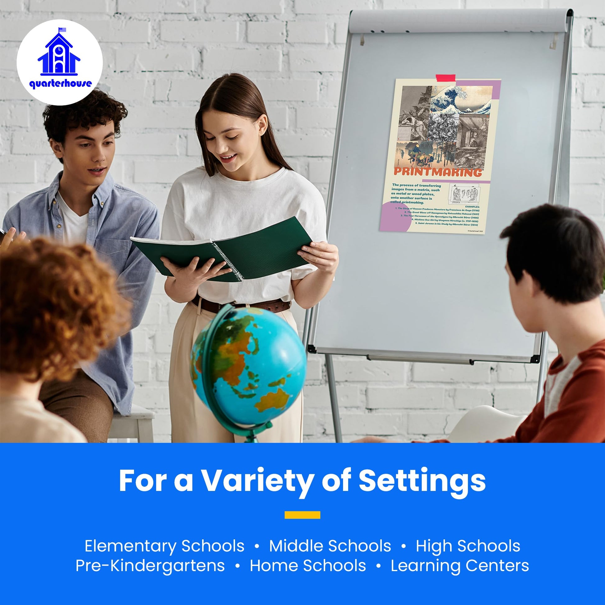 We print each poster on durable, high-quality paper that can withstand the rigors of daily classroom use. With lamination, Quarterhouse posters will last for years without fading or tearing. Additionally, the posters are easy to hang with adhesive strips or push pins, making them simple to display in your classroom.