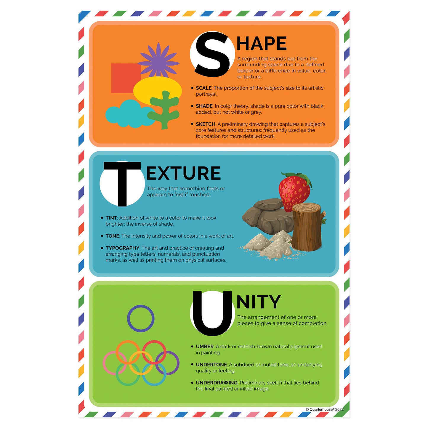 Quarterhouse Art Vocabulary, Letters S-U Poster, Art Classroom Materials for Teachers