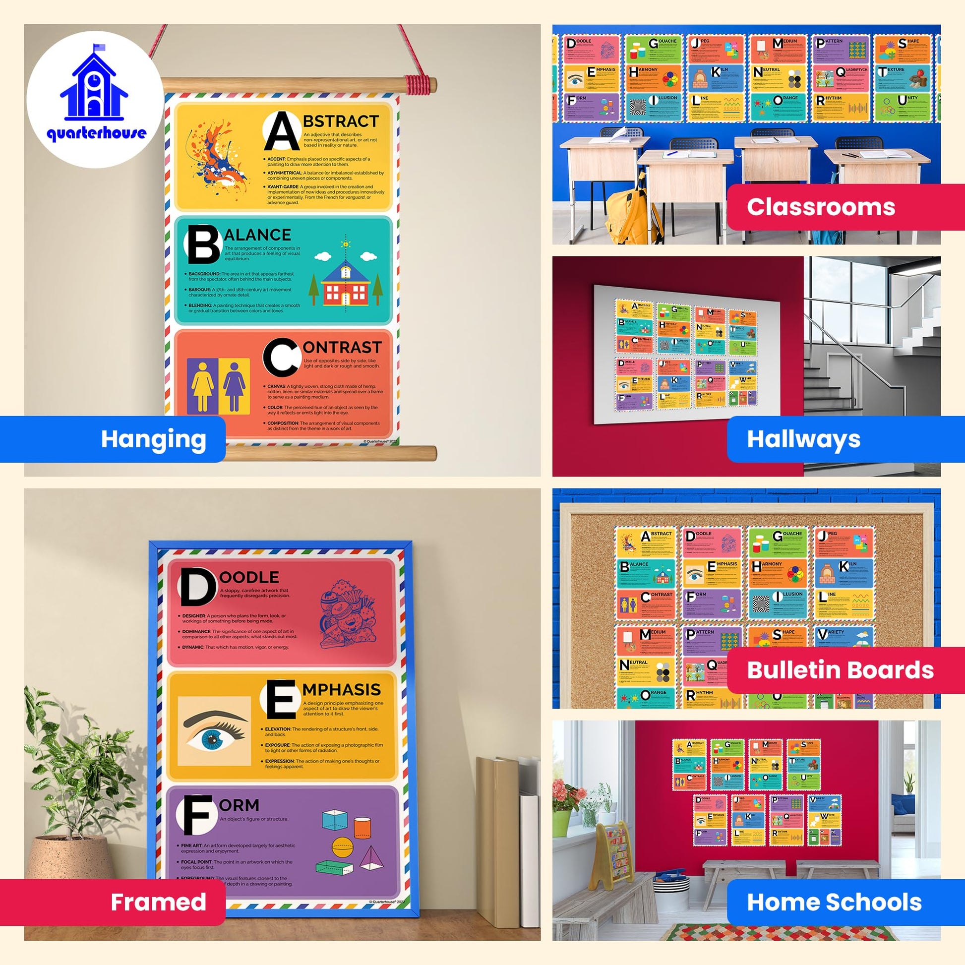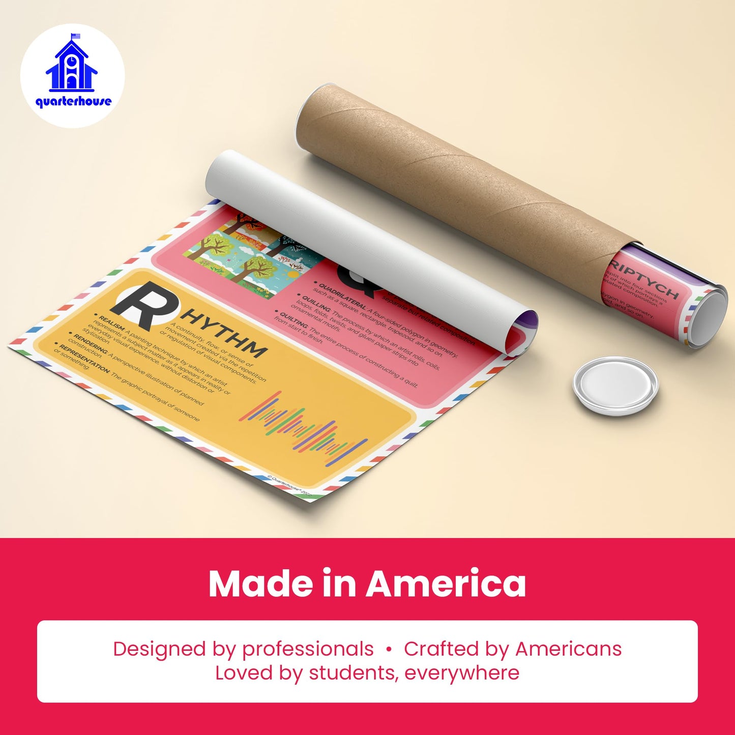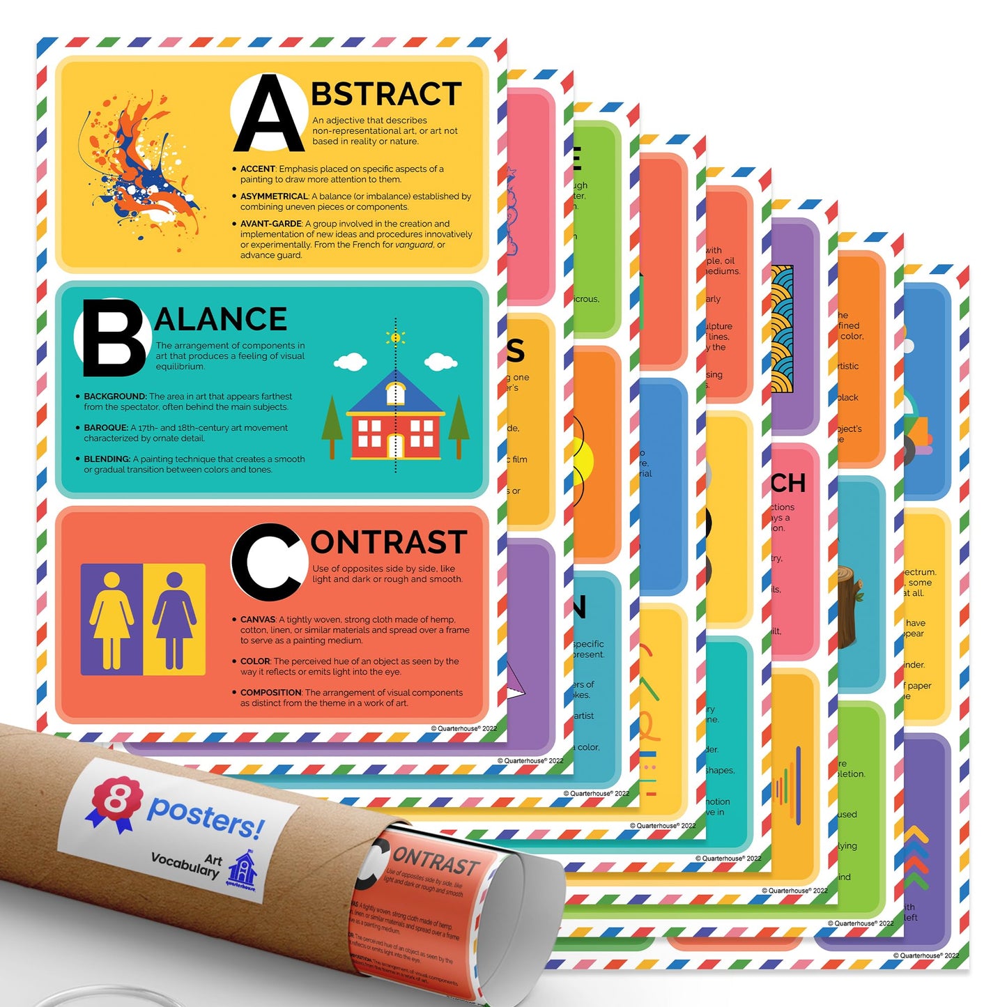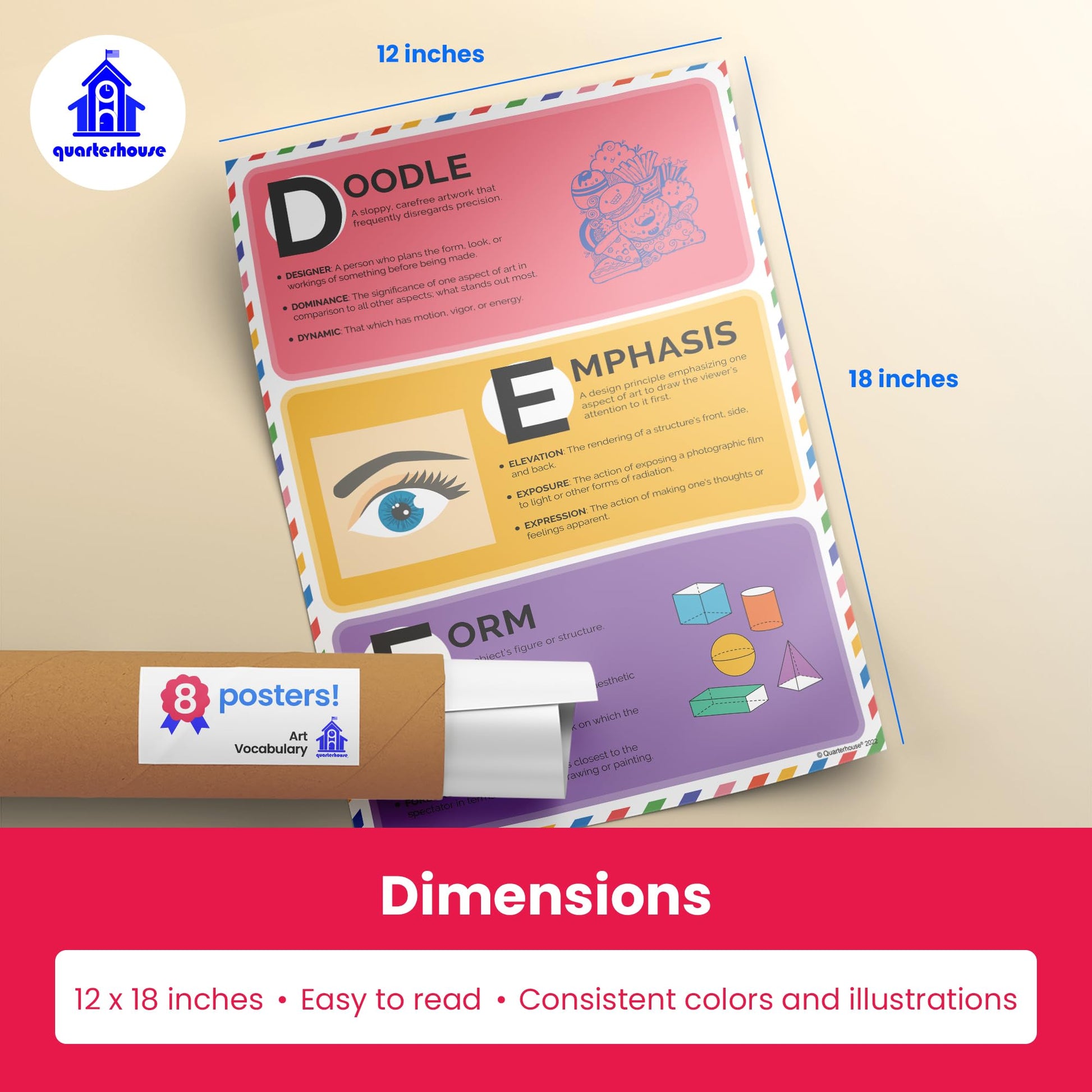 Quarterhouse Art Vocabulary Poster Set, Art Classroom Learning Materials for K-12 Students and Teachers, Set of 8, 12 x 18 Inches, Extra Durable