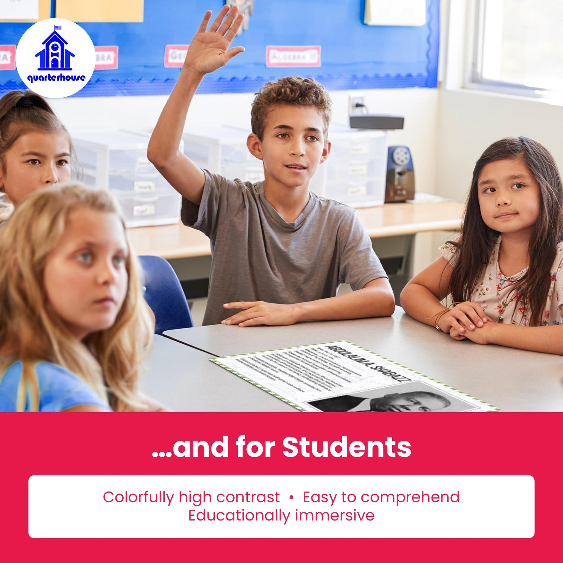 We print each poster on durable, high-quality paper that can withstand the rigors of daily classroom use. With lamination, Quarterhouse posters will last for years without fading or tearing. Additionally, the posters are easy to hang with adhesive strips or push pins, making them simple to display in your classroom.