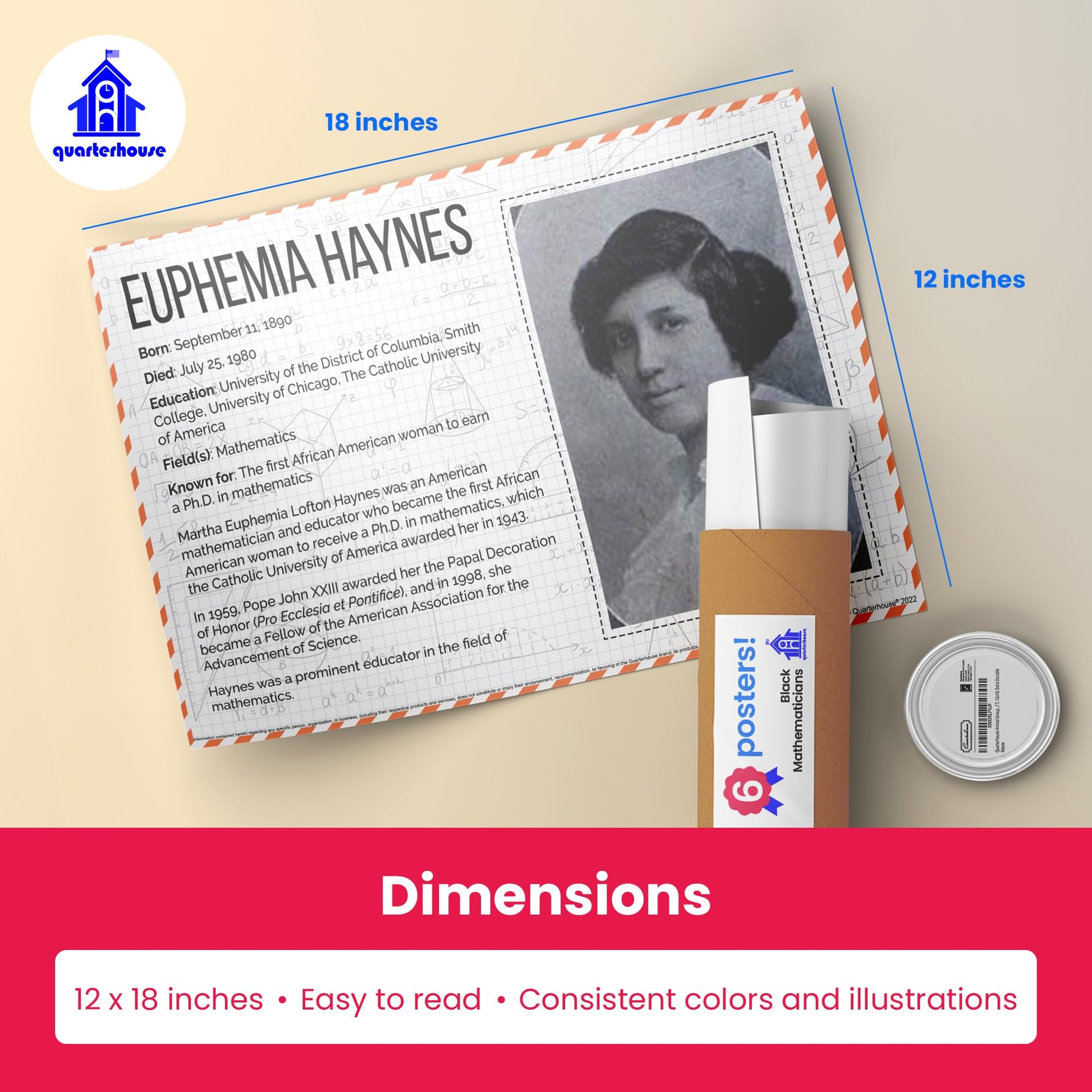 Quarterhouse Black Mathematicians Poster Set, Math and History Classroom Learning Materials for K-12 Students and Teachers, Set of 6, 12 x 18 Inches, Extra Durable