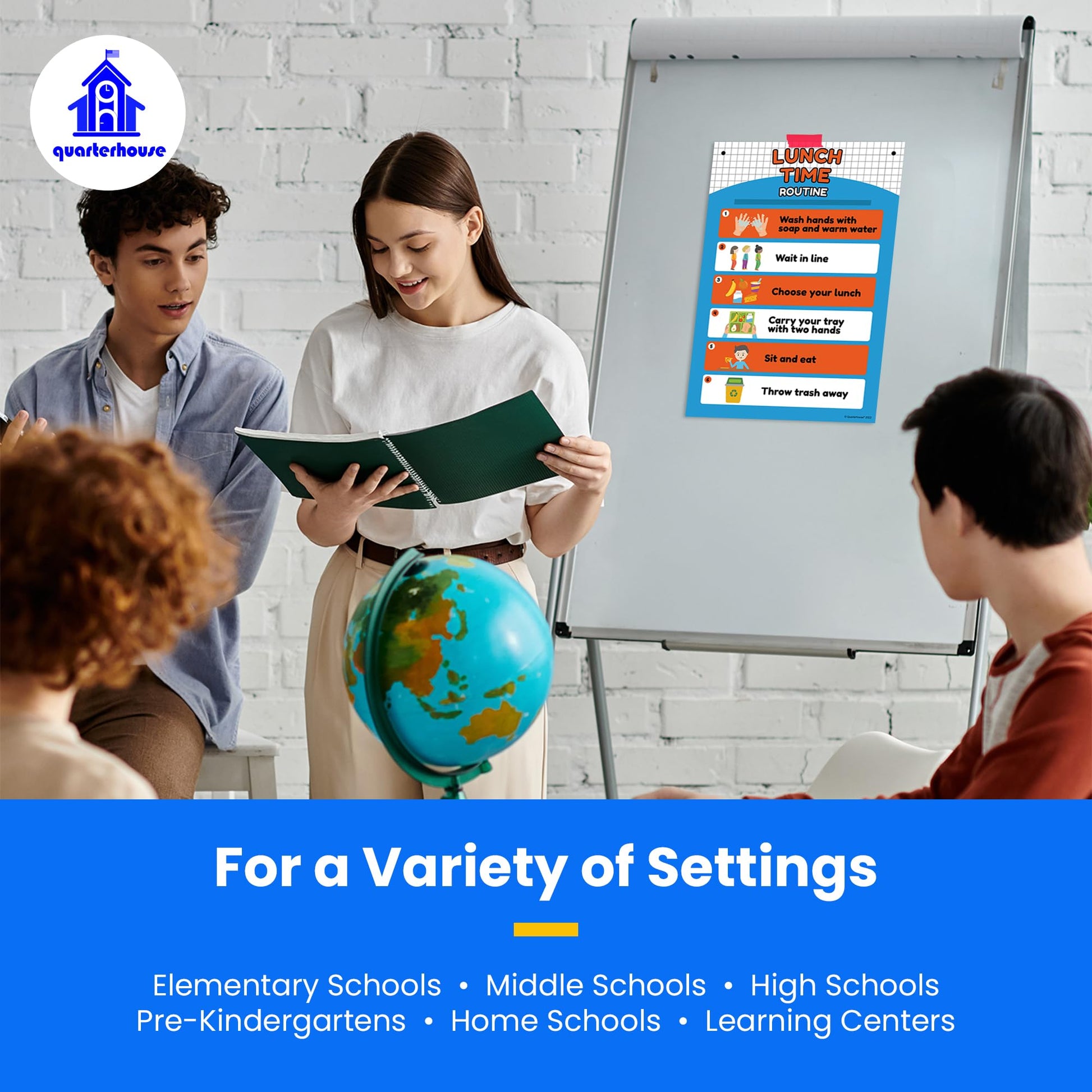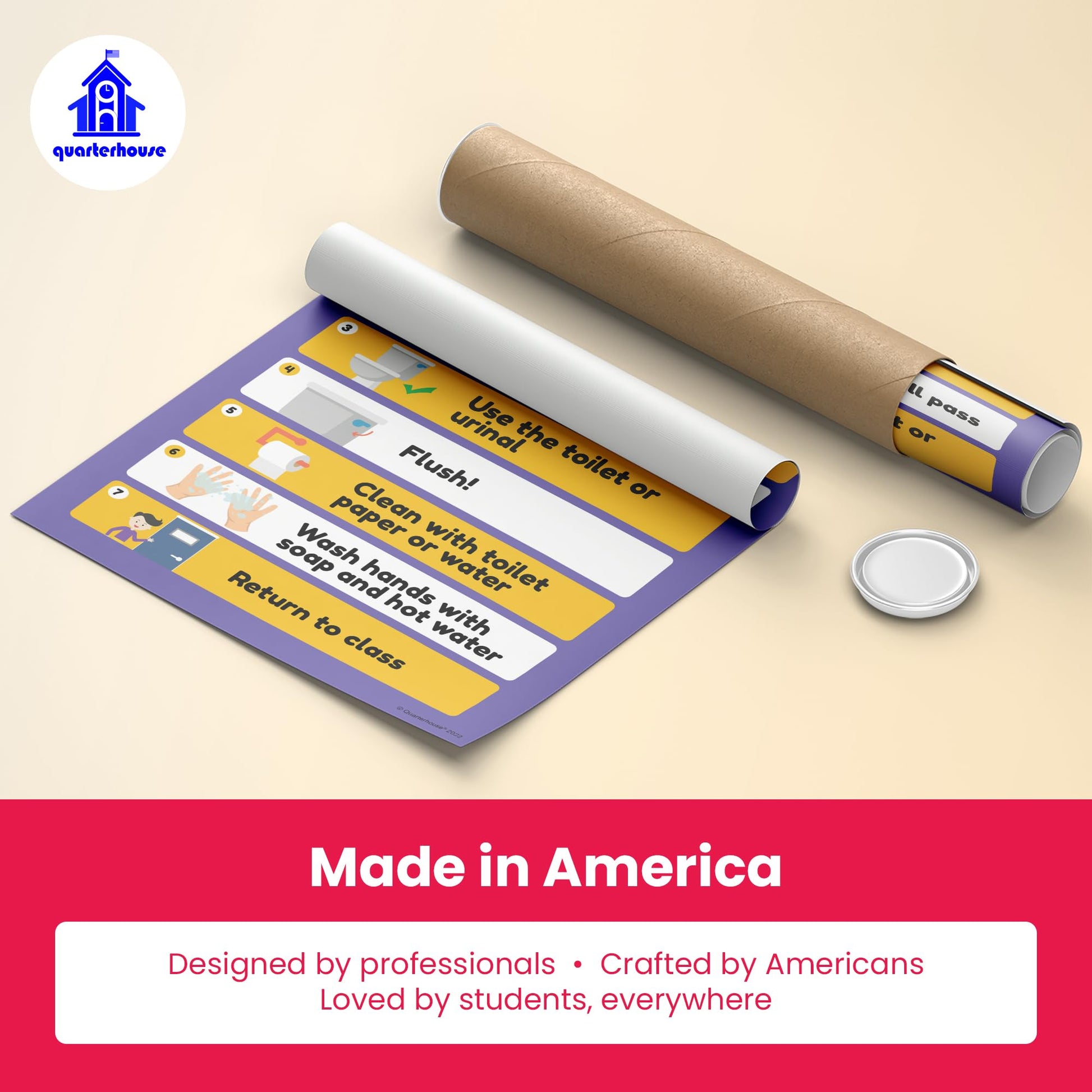 We print each poster on durable, high-quality paper that can withstand the rigors of daily classroom use. With lamination, Quarterhouse posters will last for years without fading or tearing. Additionally, the posters are easy to hang with adhesive strips or push pins, making them simple to display in your classroom.