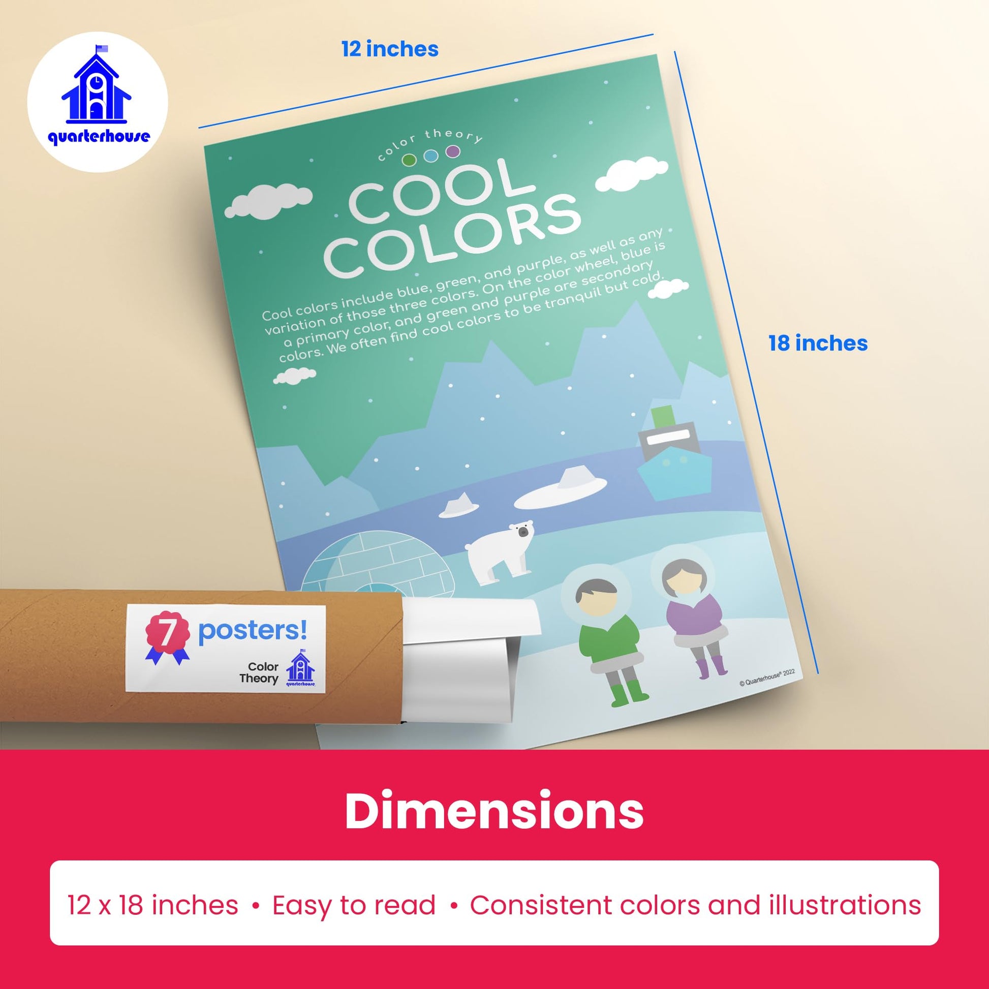 Quarterhouse Color Theory Poster Set, Art Classroom Learning Materials for K-12 Students and Teachers, Set of 7, 12 x 18 Inches, Extra Durable