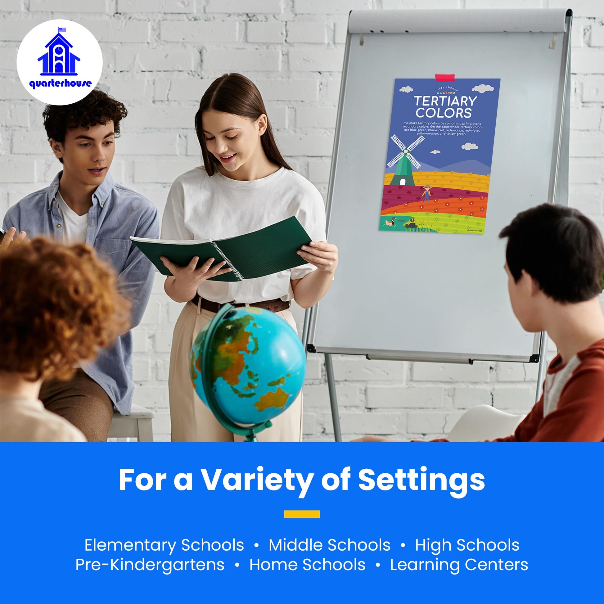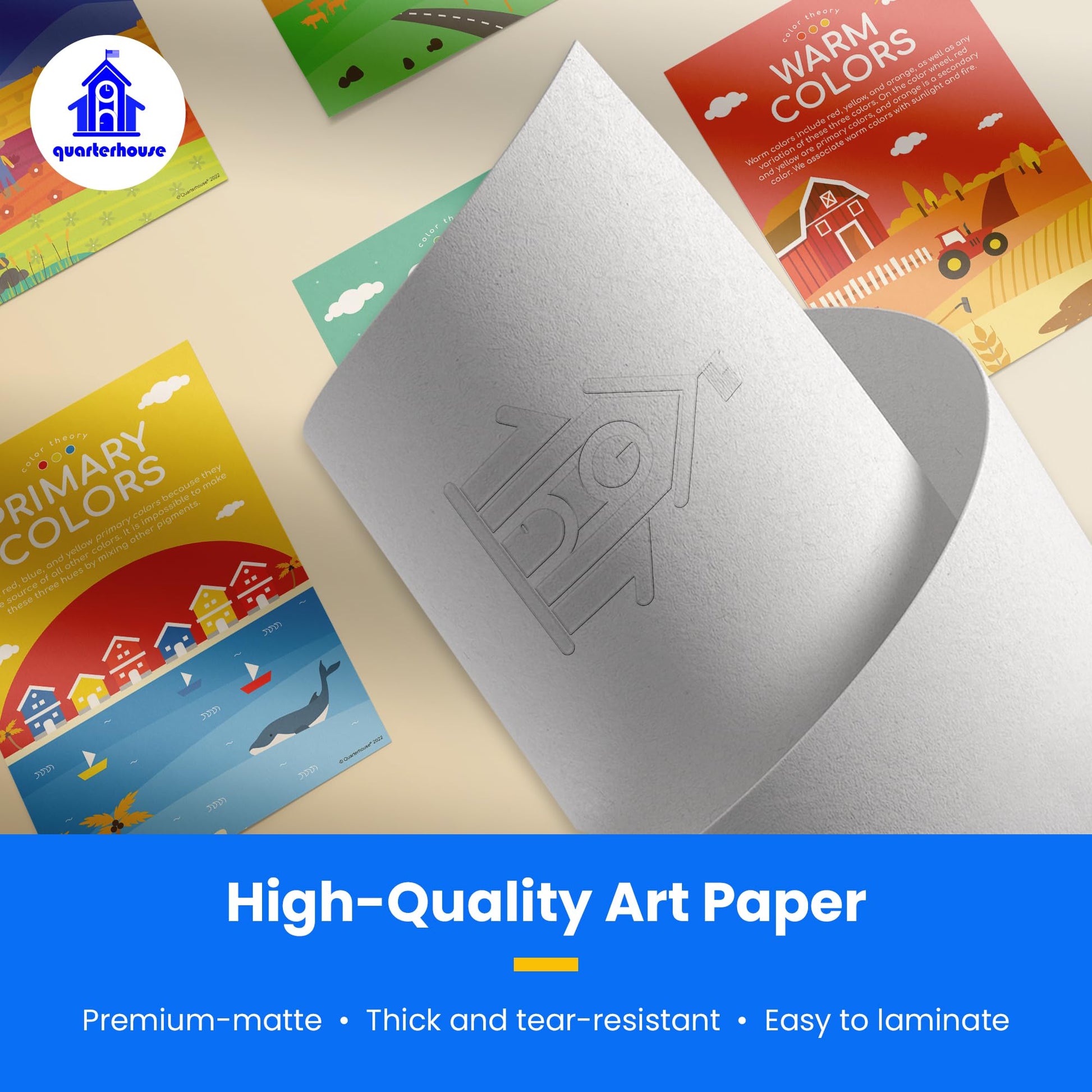 We print each poster on durable, high-quality paper that can withstand the rigors of daily classroom use. With lamination, Quarterhouse posters will last for years without fading or tearing. Additionally, the posters are easy to hang with adhesive strips or push pins, making them simple to display in your classroom.