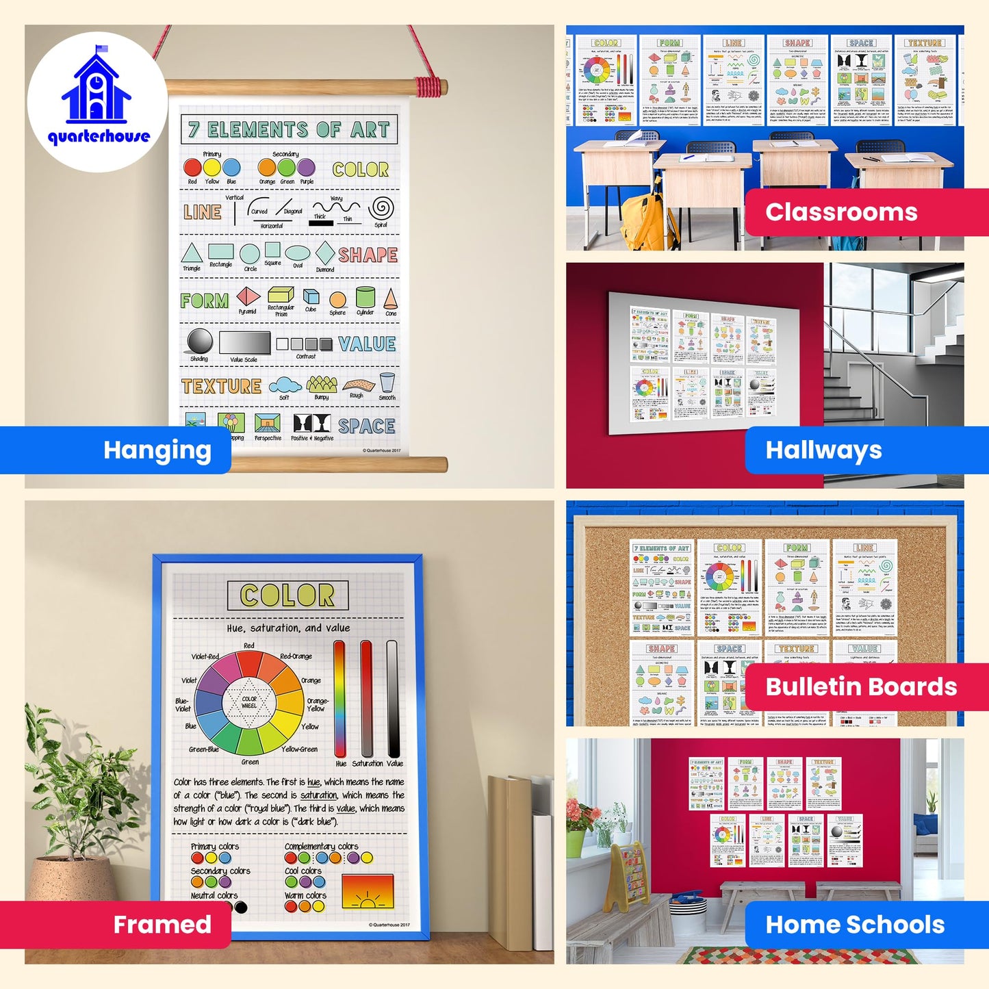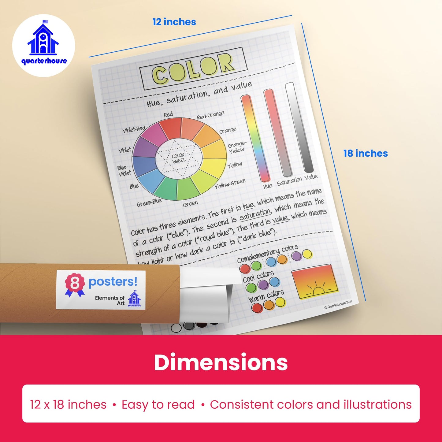 Quarterhouse Elements of Art Poster Set, Art Classroom Learning Materials for K-12 Students and Teachers, Set of 8, 12 x 18 Inches, Extra Durable