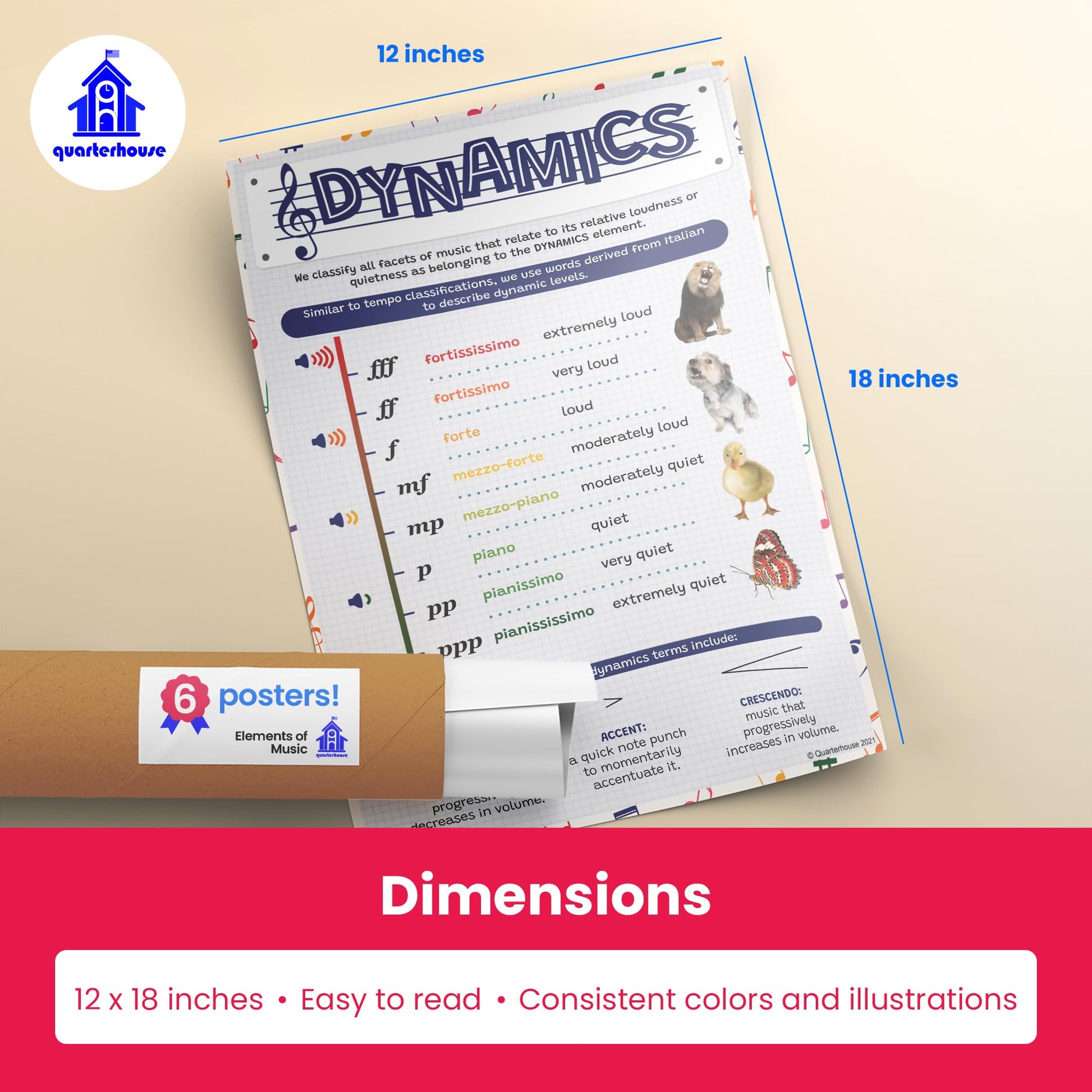 Quarterhouse Elements of Music Poster Set, Music (Band, Orchestra, and Choir) Classroom Learning Materials for K-12 Students and Teachers, Set of 6, 12 x 18 Inches, Extra Durable