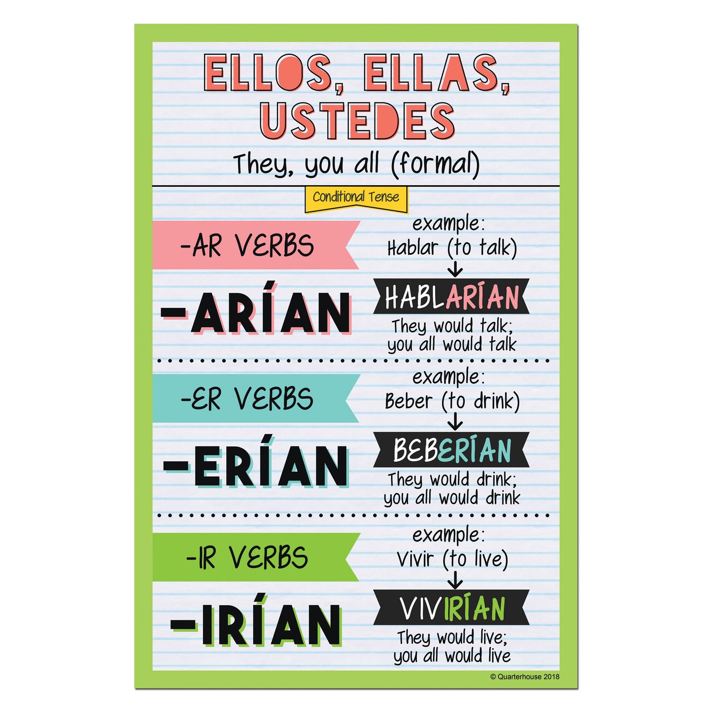 Quarterhouse Ellos, Ellas, Ustedes - Conditional Tense Spanish Verb Conjugation Poster, Spanish and ESL Classroom Materials for Teachers