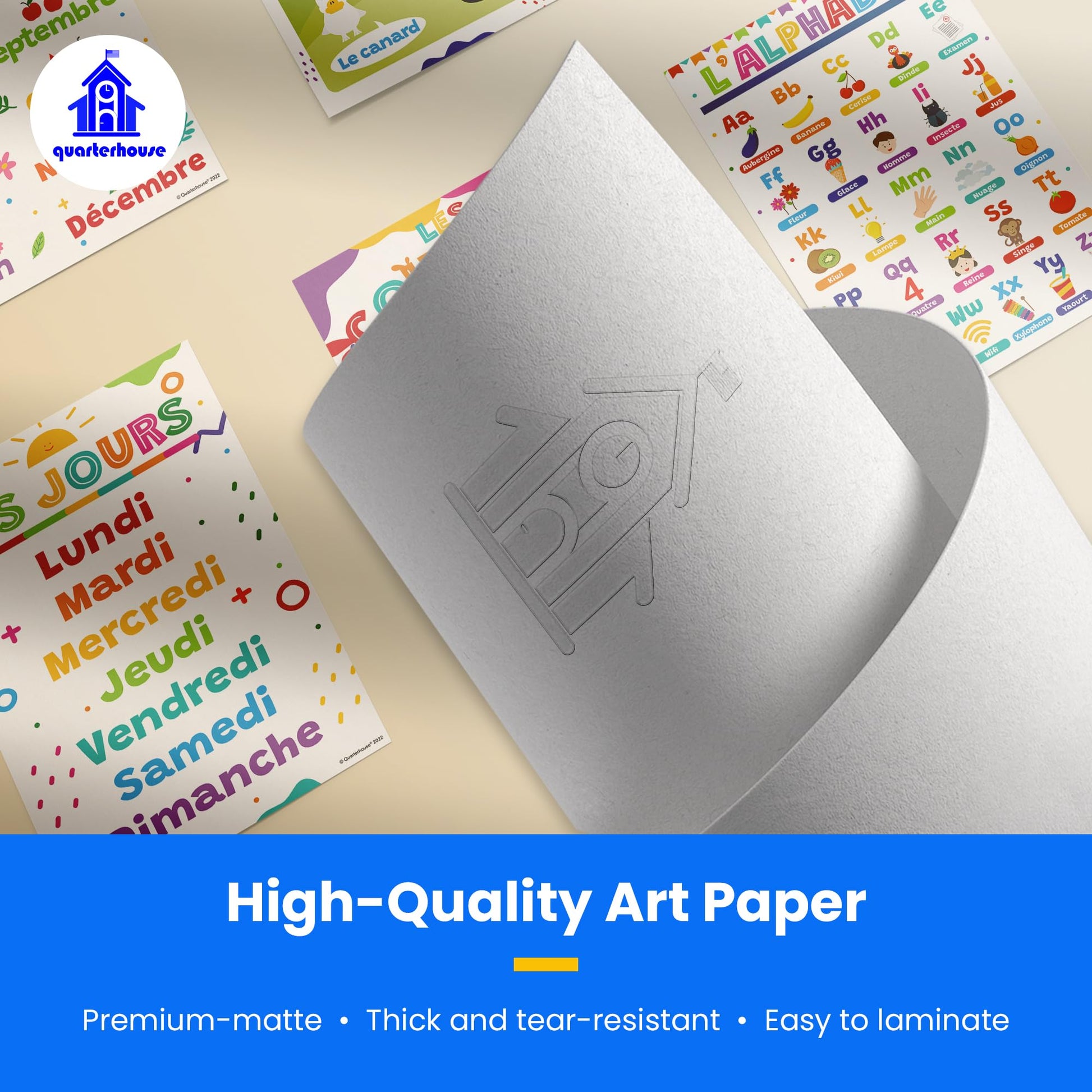 Quarterhouse Extreme Value 20 Large English-French Educational Poster Set, French Classroom Learning Materials for K-12 Students and Teachers, Double-Sided, Set of 20, 12 x 18 Inches, Extra Durable