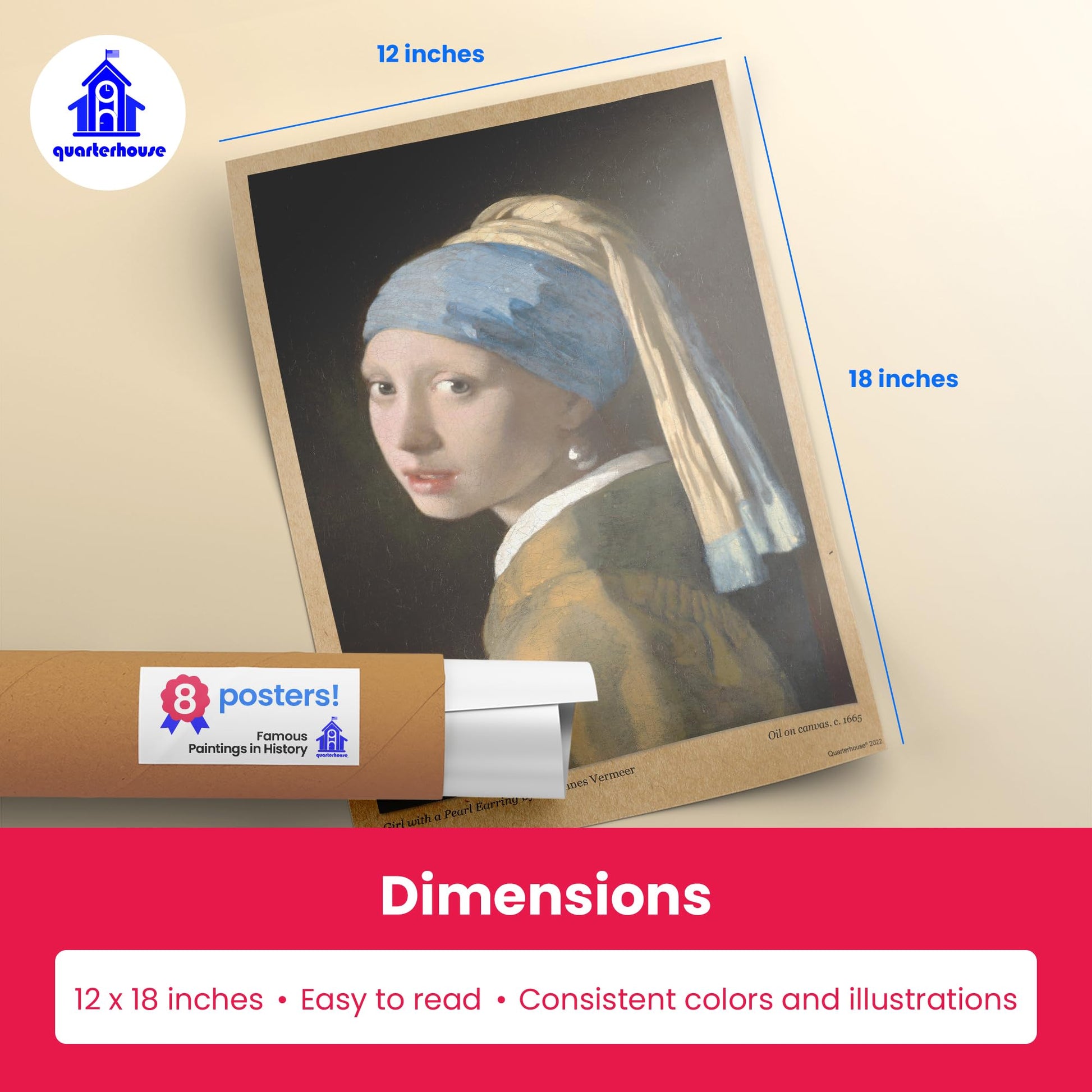 Quarterhouse Famous Paintings in History Poster Set, Art Classroom Learning Materials for K-12 Students and Teachers, Set of 9, 12 x 18 Inches, Extra Durable
