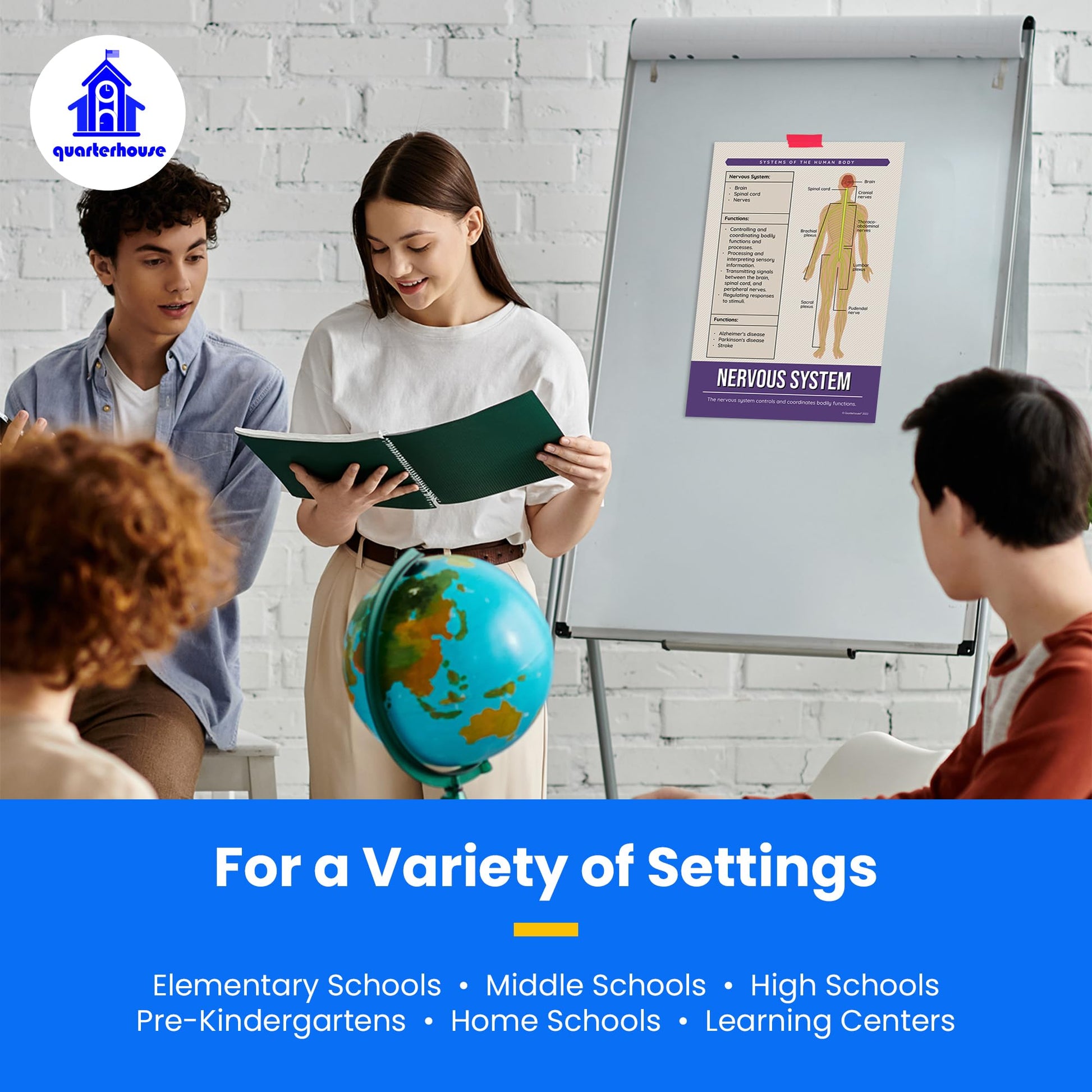 Quarterhouse Human Body Systems Poster Set, Science Classroom Learning Materials for K-12 Students and Teachers, Set of 8, 12x18, Extra Durable