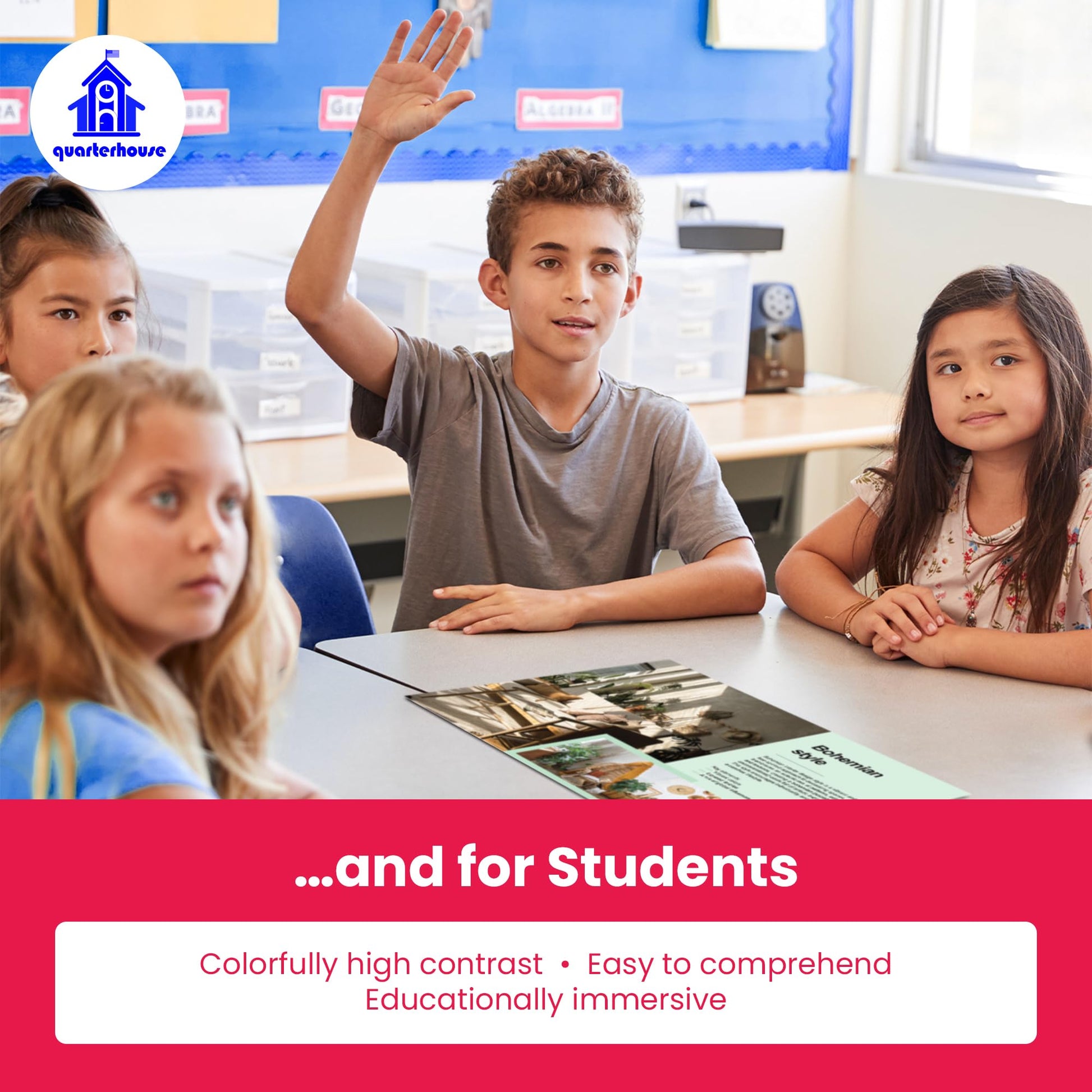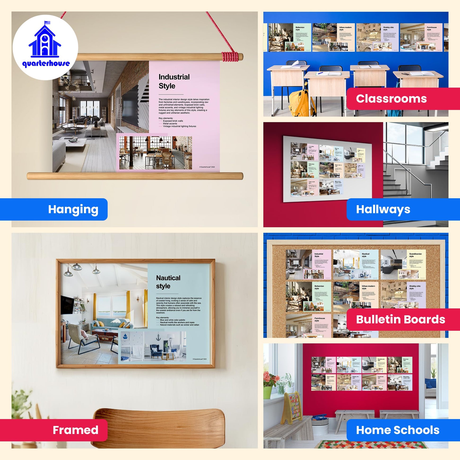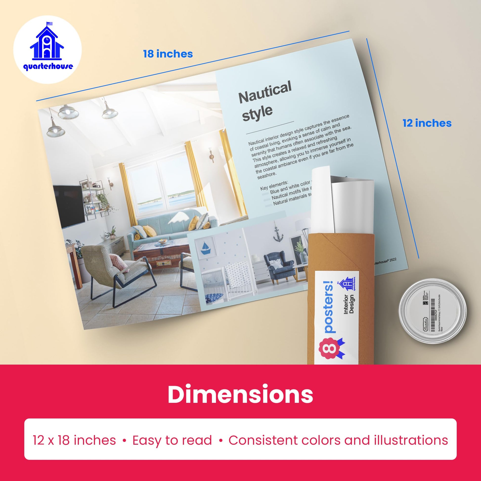 Quarterhouse Interior Design Poster Set, Art Classroom Learning Materials for K-12 Students and Teachers, Set of 8, 12x18, Extra Durable