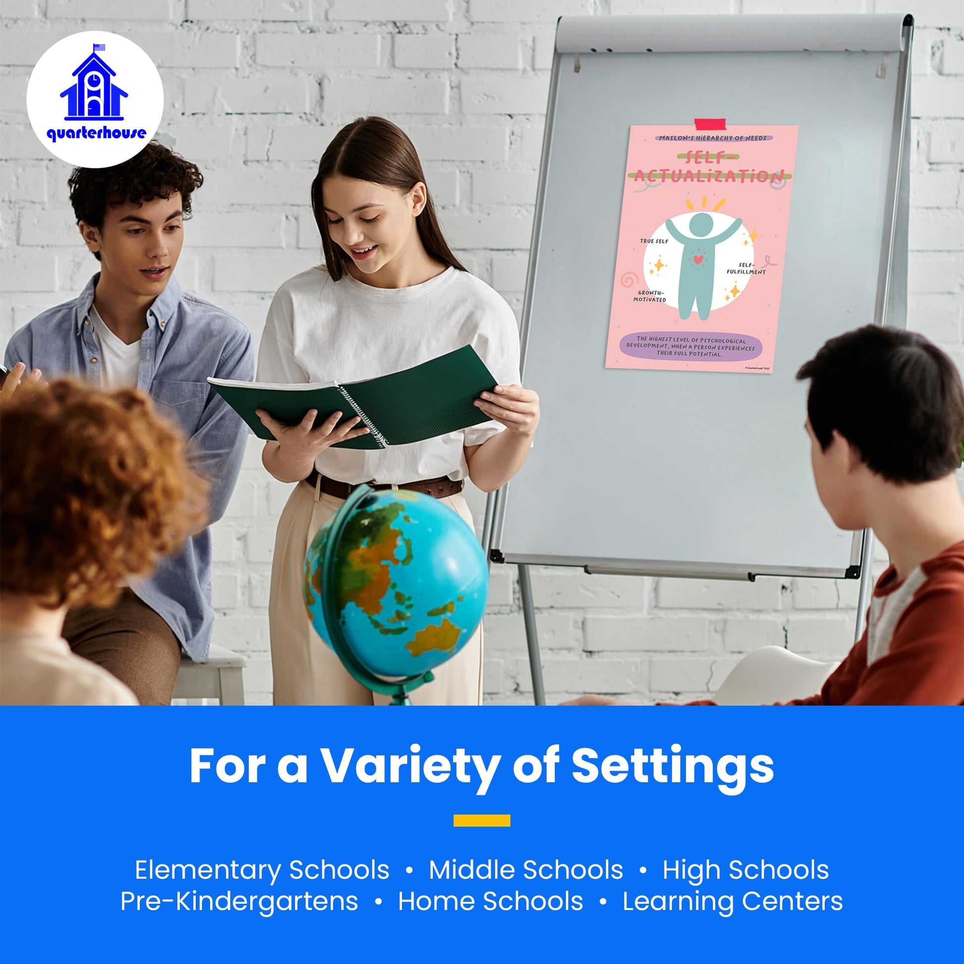 Quarterhouse Maslow's Hierarchy of Needs Poster Set, Health, Human Growth and Development, and Psychology Classroom Learning Materials for K-12 Students and Teachers, Set of 6, 12 x 18 Inches, Extra Durable