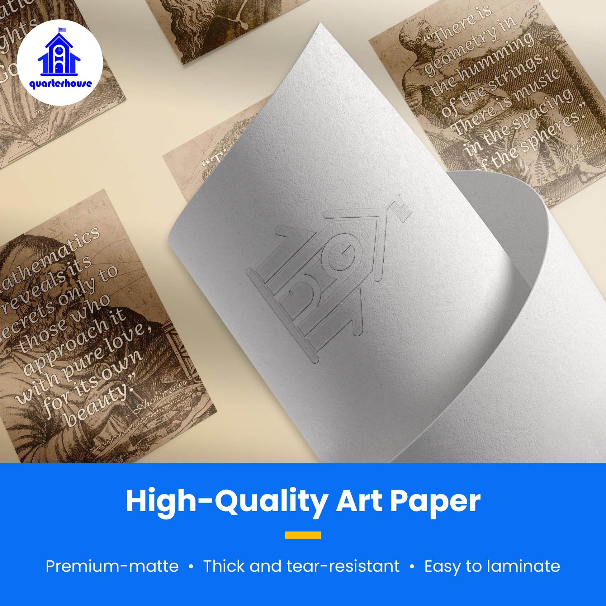 We print each poster on durable, high-quality paper that can withstand the rigors of daily classroom use. With lamination, Quarterhouse posters will last for years without fading or tearing. Additionally, the posters are easy to hang with adhesive strips or push pins, making them simple to display in your classroom.
