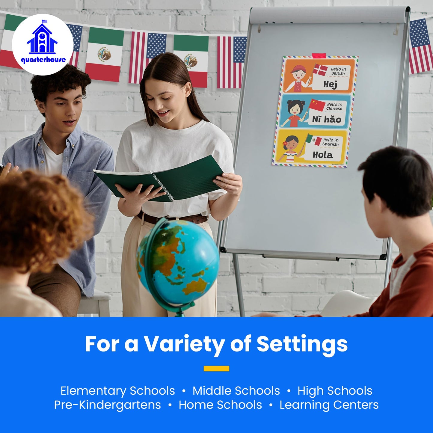 — Multi-Country Representation: This international flag bunting includes flags from around the world, representing a diverse range of countries, cultures, and nationalities. Perfect for promoting global awareness and cultural appreciation in the classroom.
