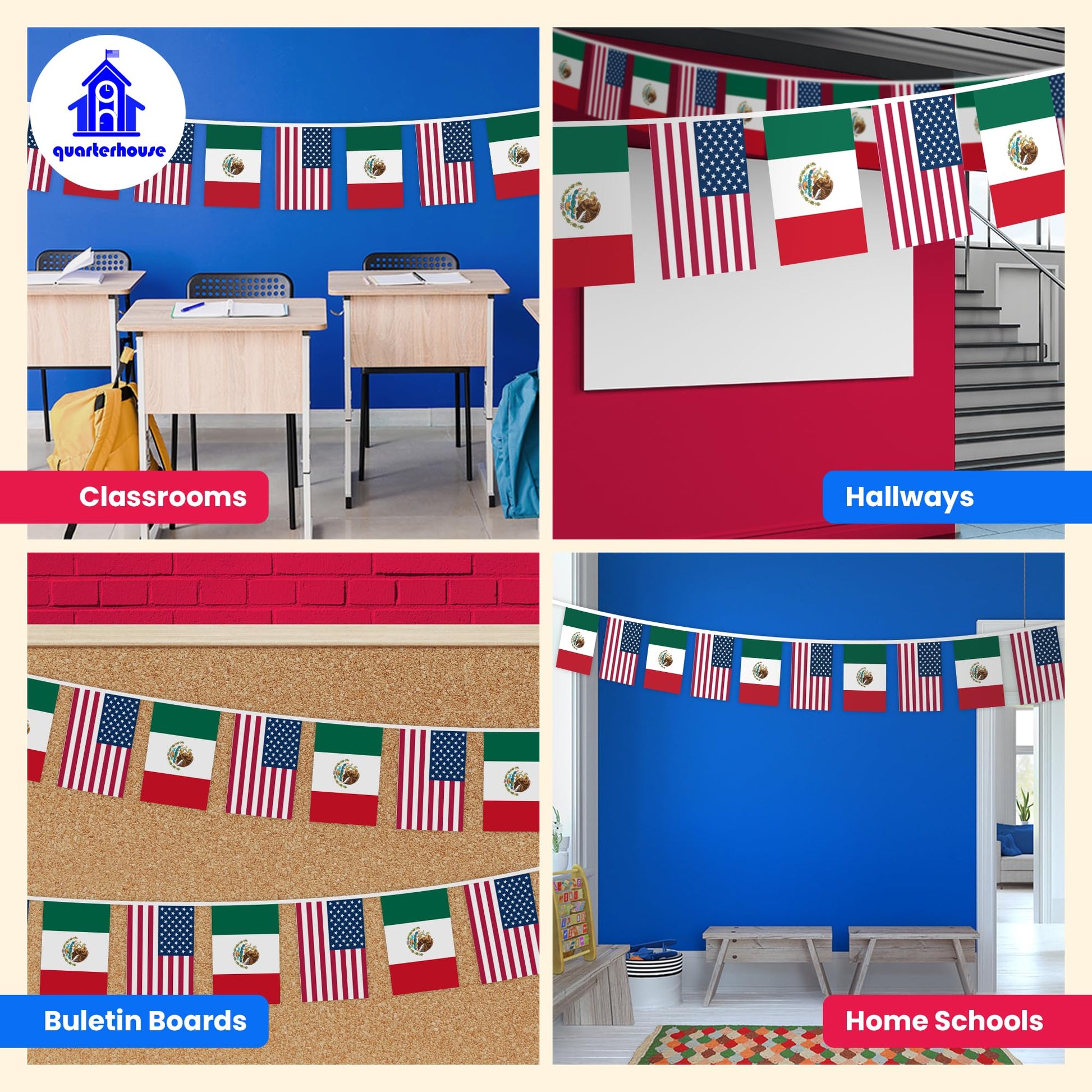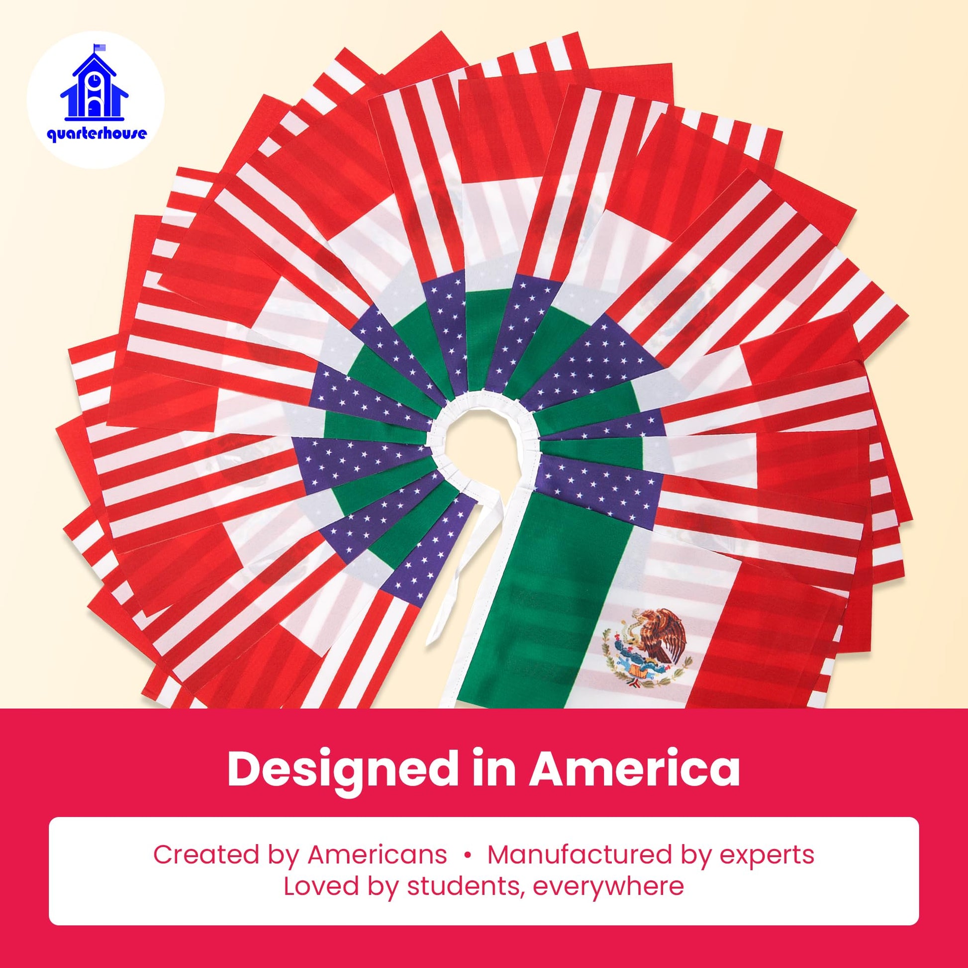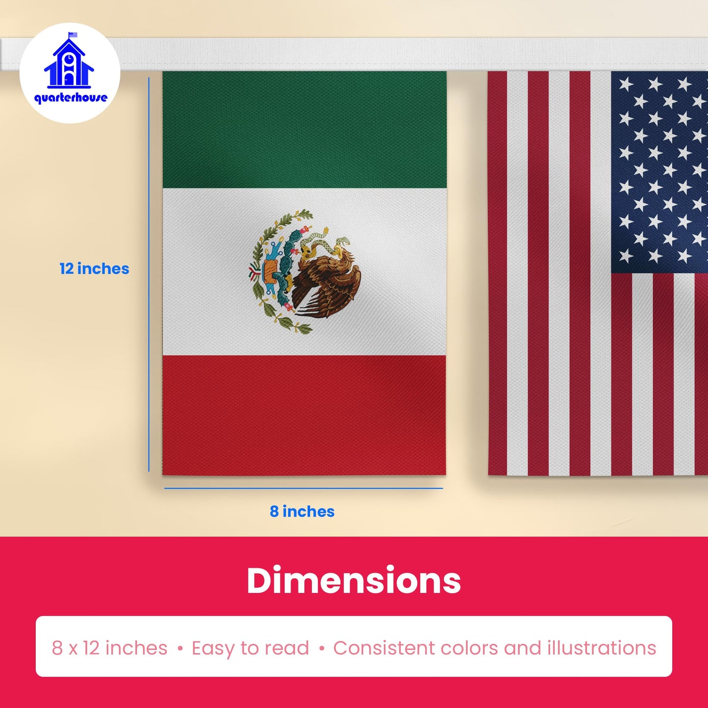 Quarterhouse Mexican and American Flags - 20 Alternating Flags Per String - Polyester, 8 x 12 Inches