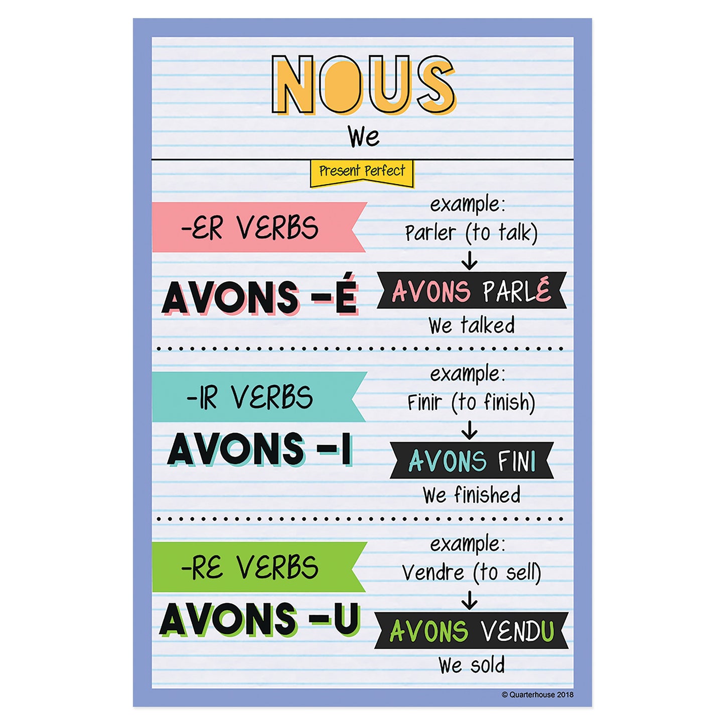 Quarterhouse Nous - Past Tense French Verb Conjugation Poster, French and ESL Classroom Materials for Teachers