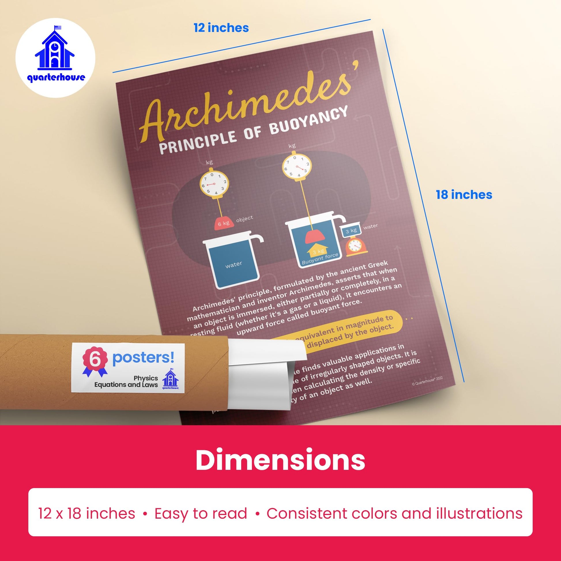 Quarterhouse Physics Equations and Laws Poster Set, Science Classroom Learning Materials for K-12 Students and Teachers, Set of 6, 12x18, Extra Durable