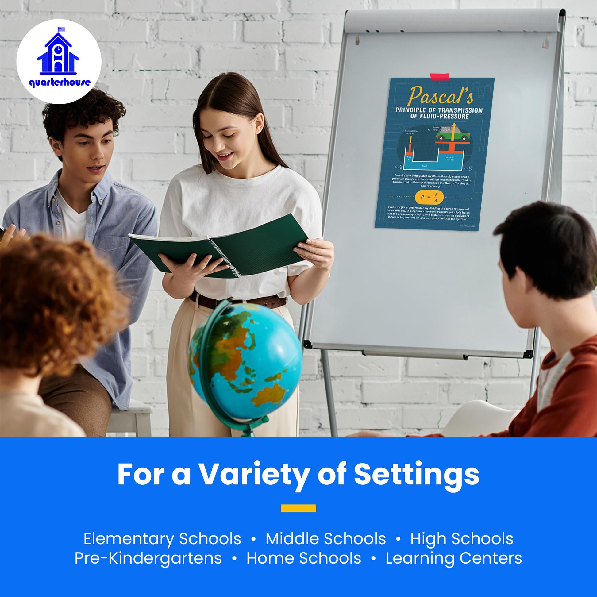 This poster set is part of the Quarterhouse Line of Science Classroom Learning Materials, designed to help teachers create a visually engaging and educational environment for their students. Explore the vast world of biology, chemistry, and physics—concepts essential to a comprehensive understanding of science—from your classroom walls! Our posters feature high-quality images and clear, easy-to-read text that will captivate students' attention and spark their curiosity about the world. Each poster focuses on a learning theme, examples of which include evolutionary biology, chemical bonding, and thermodynamics. Whether you teach elementary, middle, or high school, these posters are an excellent addition to any classroom. We print each poster on durable, high-quality paper that can withstand the rigors of daily classroom use. With lamination, Quarterhouse posters will last for years without fading or tearing. Additionally, the posters are easy to hang with adhesive strips or push pins, making them simple to display in your classroom. Invest in your students and enhance their learning experience with a Quarterhouse Classroom Science Poster today. Watch your room transform into an engaging and stimulating learning environment that will inspire and empower your students to become curious, lifelong learners.