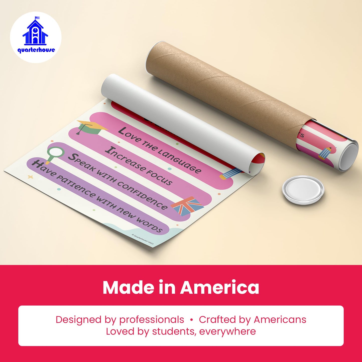 — Made in America: We design and manufacture our learning materials right here in the USA. Posters ship in heavy duty kraft tubes for maximum protection. Durability guaranteed.