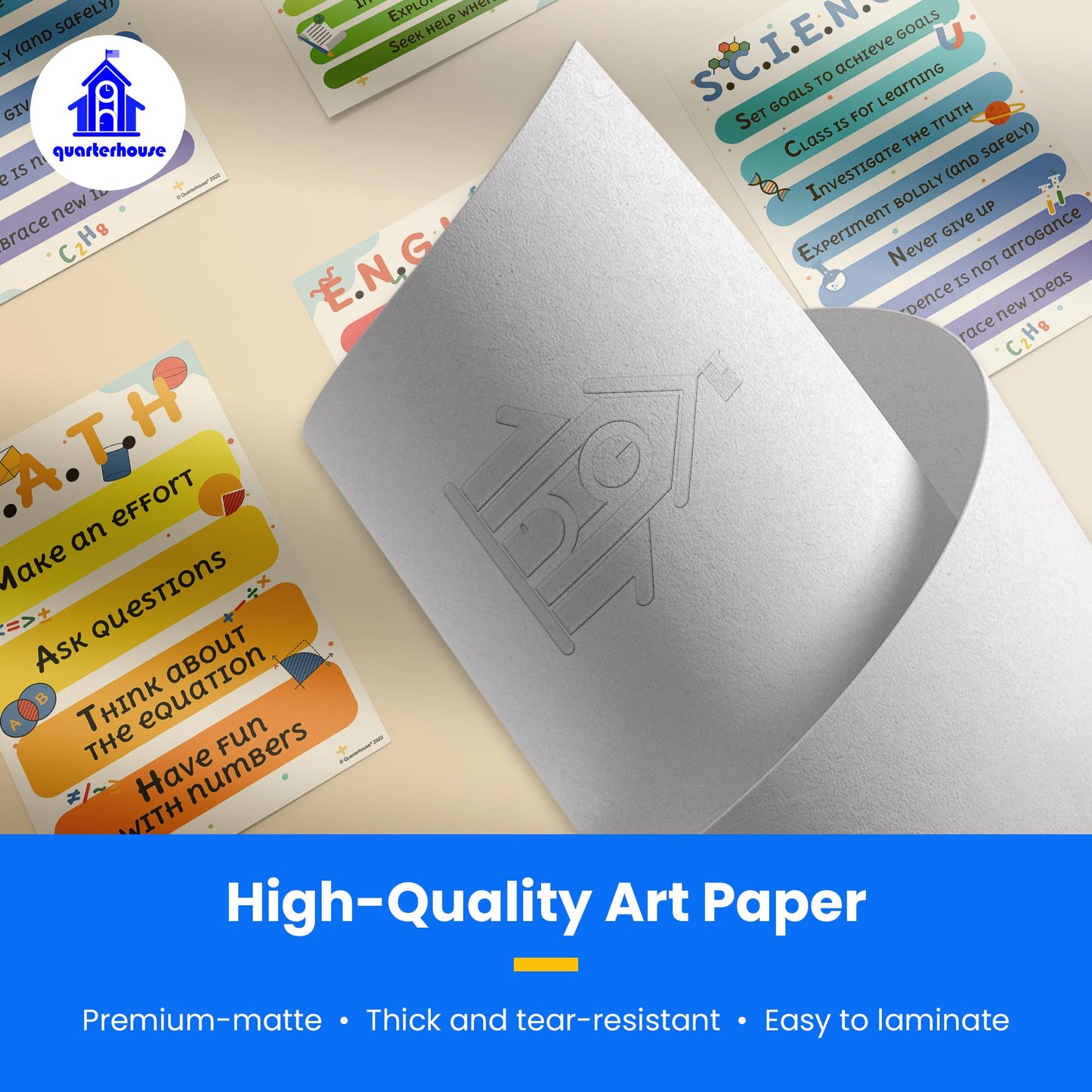 We print each poster on durable, high-quality paper that can withstand the rigors of daily classroom use. With lamination, Quarterhouse posters will last for years without fading or tearing. Additionally, the posters are easy to hang with adhesive strips or push pins, making them simple to display in your classroom.