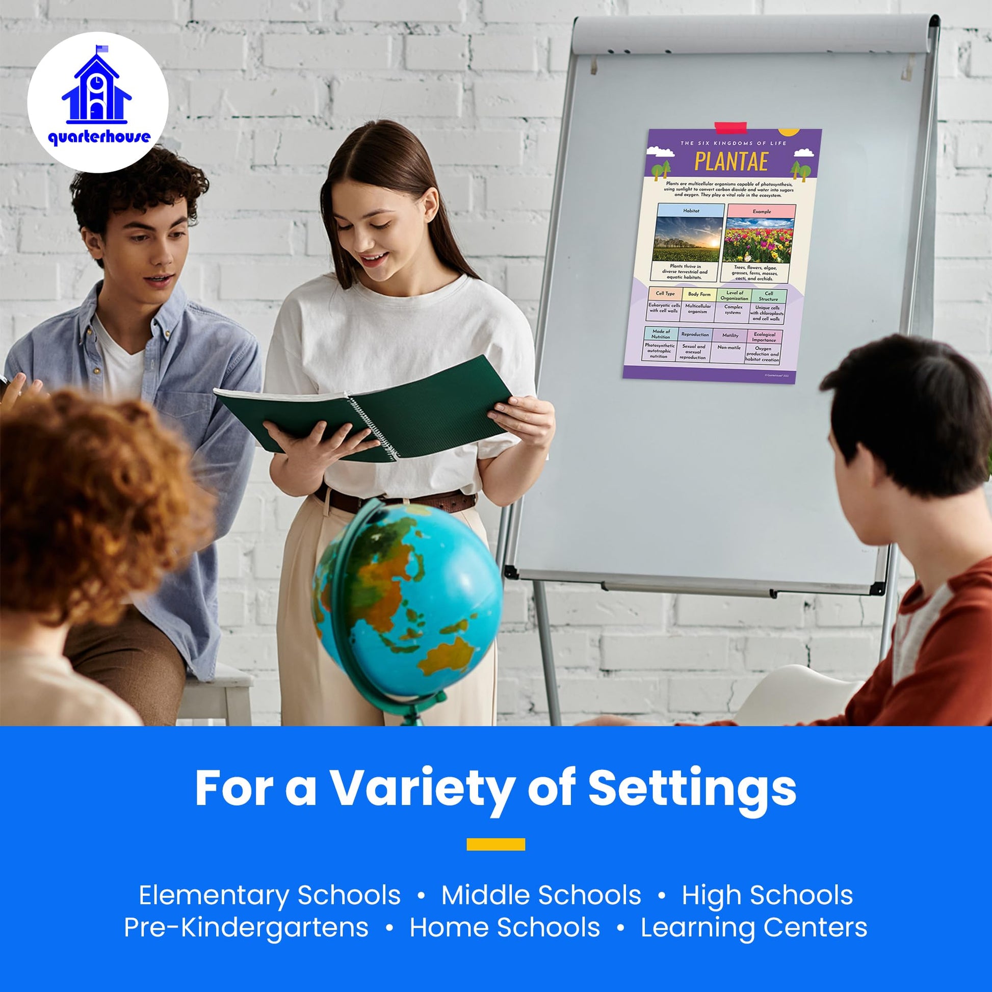 Quarterhouse Six Kingdoms of Biology Poster Set, Science Classroom Learning Materials for K-12 Students and Teachers, Set of 6, 12x18, Extra Durable
