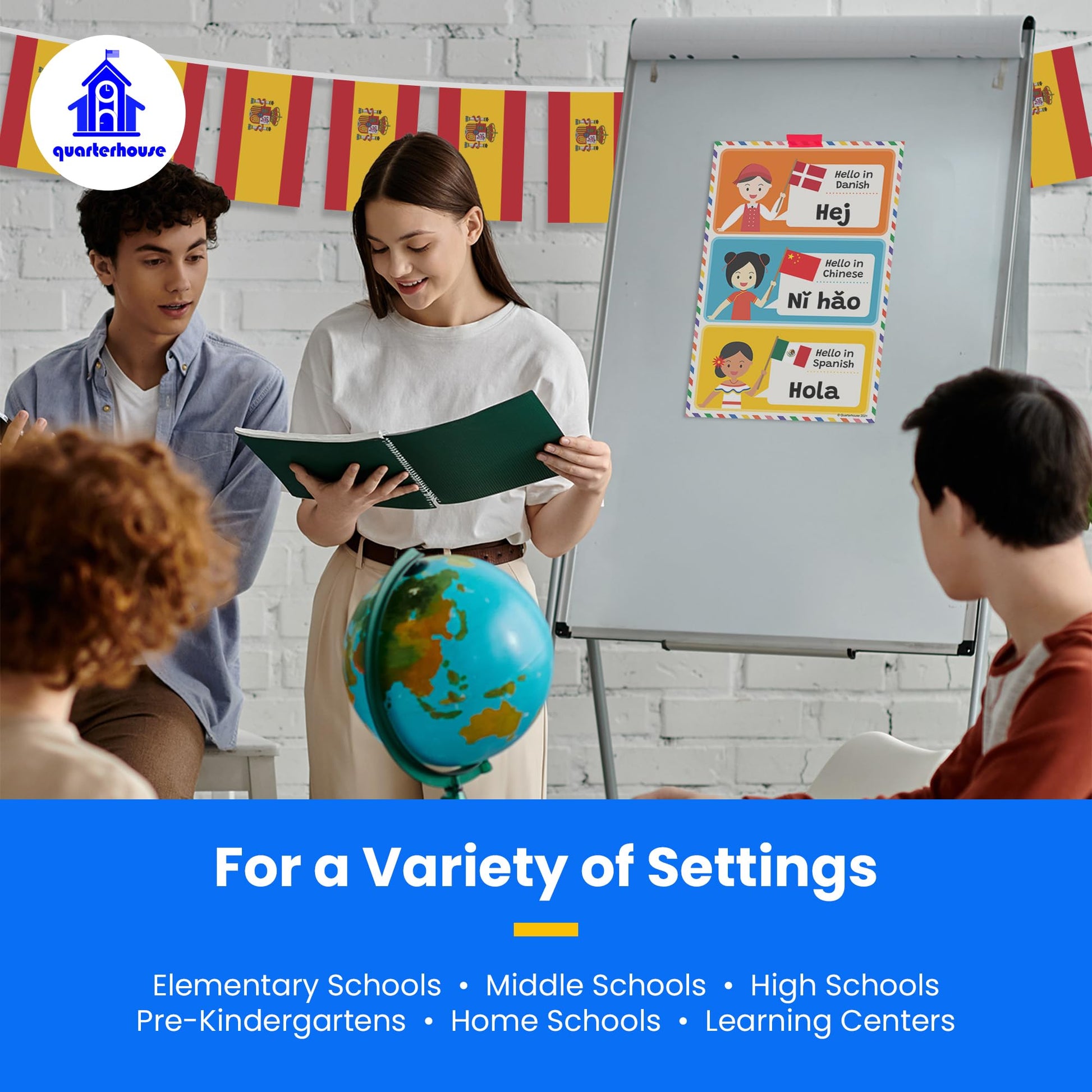 This product is part of the Quarterhouse Line of International Flag Bunting, the perfect decoration for foreign language classrooms and bilingual events!