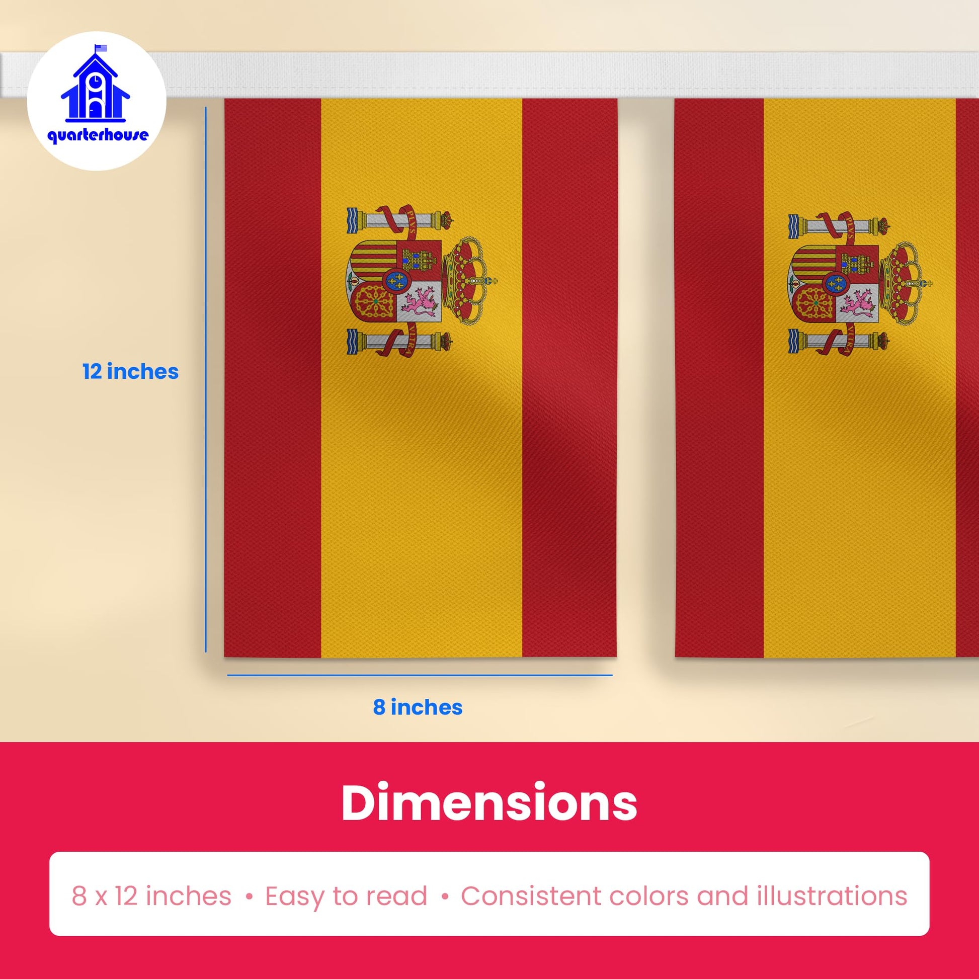 Quarterhouse Spain Flags - 20 Flags Per String (Repeating) - Polyester, 8 x 12 Inches