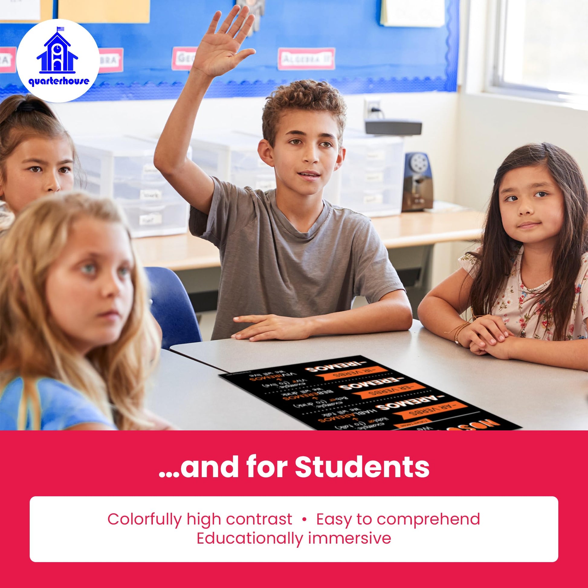 — Manufactured for Classrooms: Each poster is 12 x 18 inches. Printed on high-grade, cover-weight satin paper for added protection. Made to withstand the rigors of K-12 classrooms.