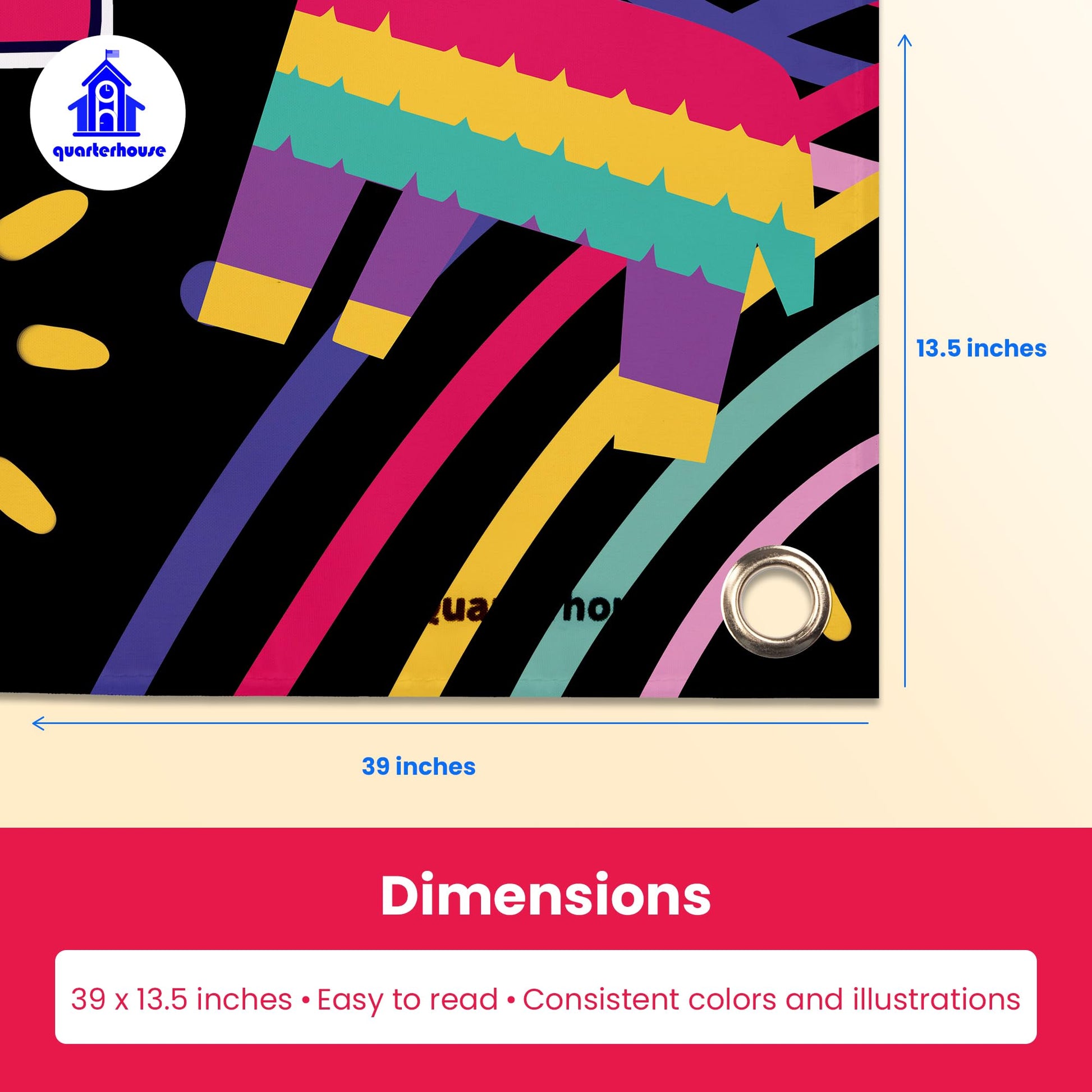 Our banners are made with high-quality, durable material that feature bold, eye-catching lettering in a variety of national colors. Each banner measures 60 by 10 inches (roughly 5 by 1 feet), making them the perfect size for hanging on classroom walls, bulletin boards, or at the entrance of your bilingual event.