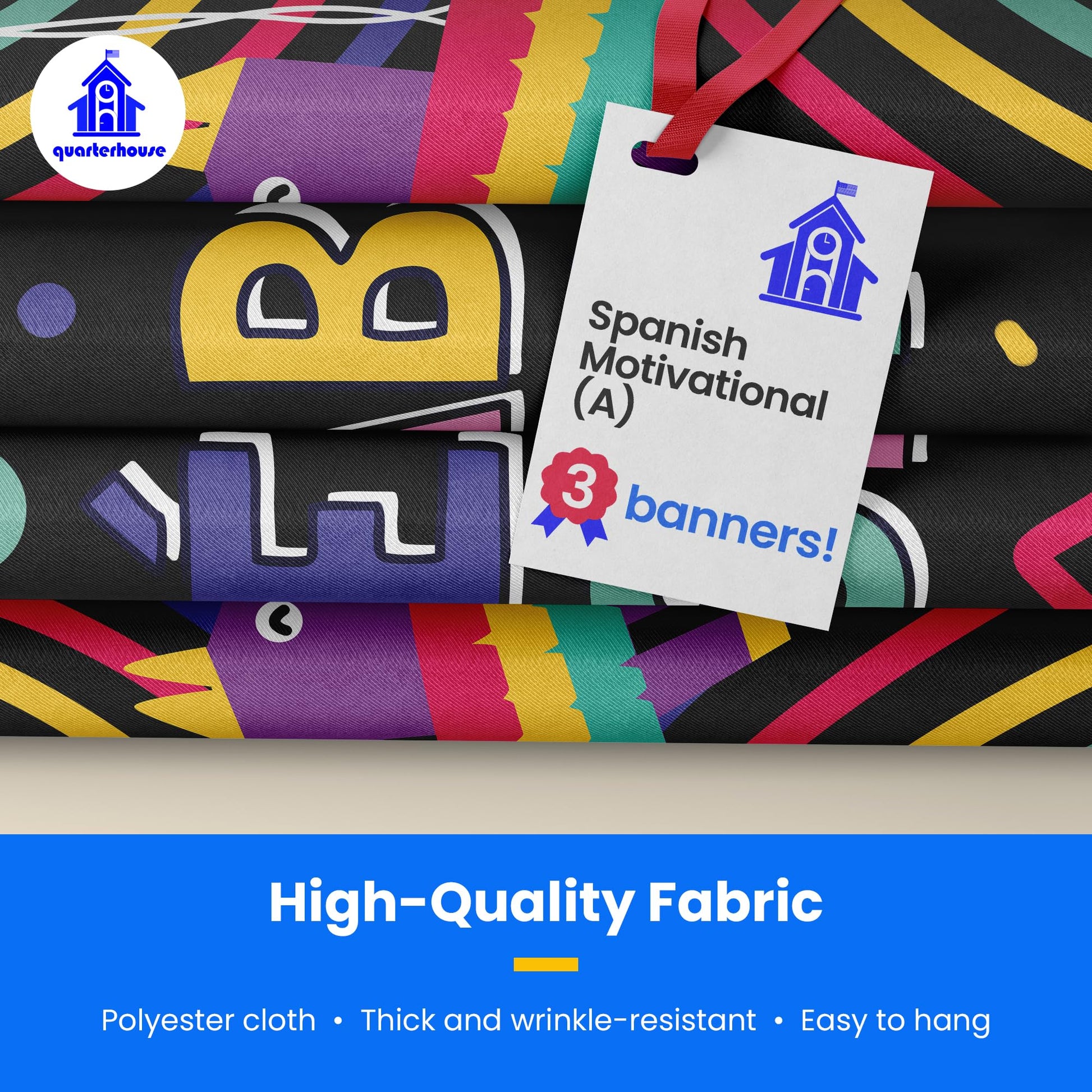Quarterhouse Spanish Motivational (A) Banner Set, Spanish - ESL Classroom Learning Materials for K-12 Students and Teachers, Set of 3, 39 x 13.5 Inches, Extra Durable
