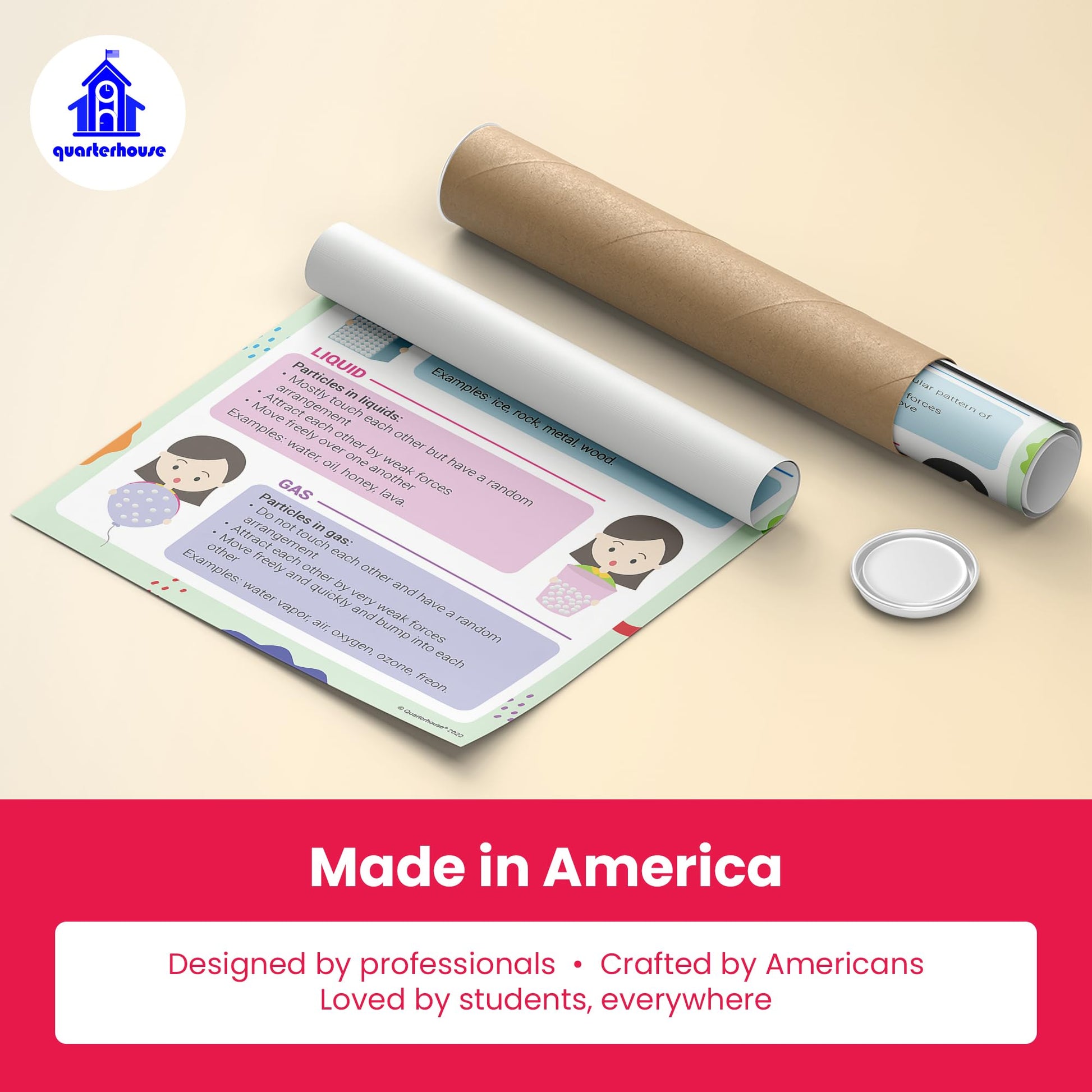 — Made in America: We design and manufacture our learning materials right here in the USA. Posters ship in heavy duty kraft tubes for maximum protection. Durability guaranteed.