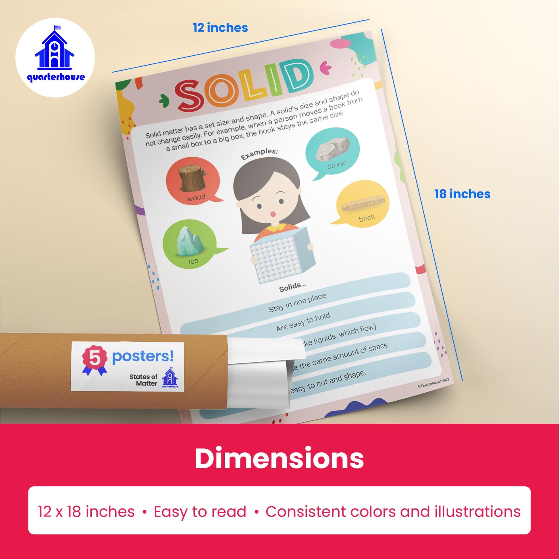 Quarterhouse States of Matter Poster Set, Science Classroom Learning Materials for K-12 Students and Teachers, Set of 5, 12 x 18 Inches, Extra Durable