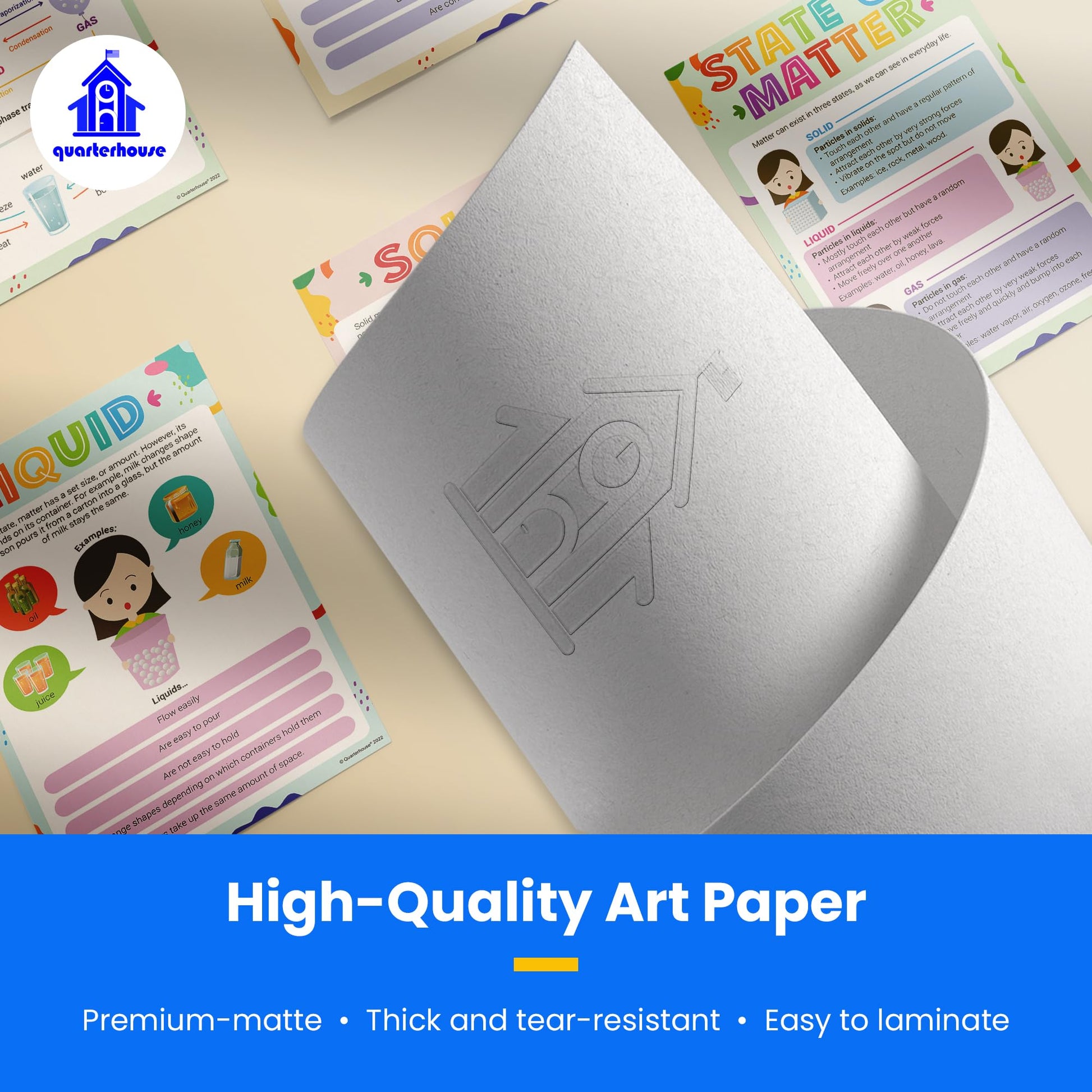 We print each poster on durable, high-quality paper that can withstand the rigors of daily classroom use. With lamination, Quarterhouse posters will last for years without fading or tearing. Additionally, the posters are easy to hang with adhesive strips or push pins, making them simple to display in your classroom.