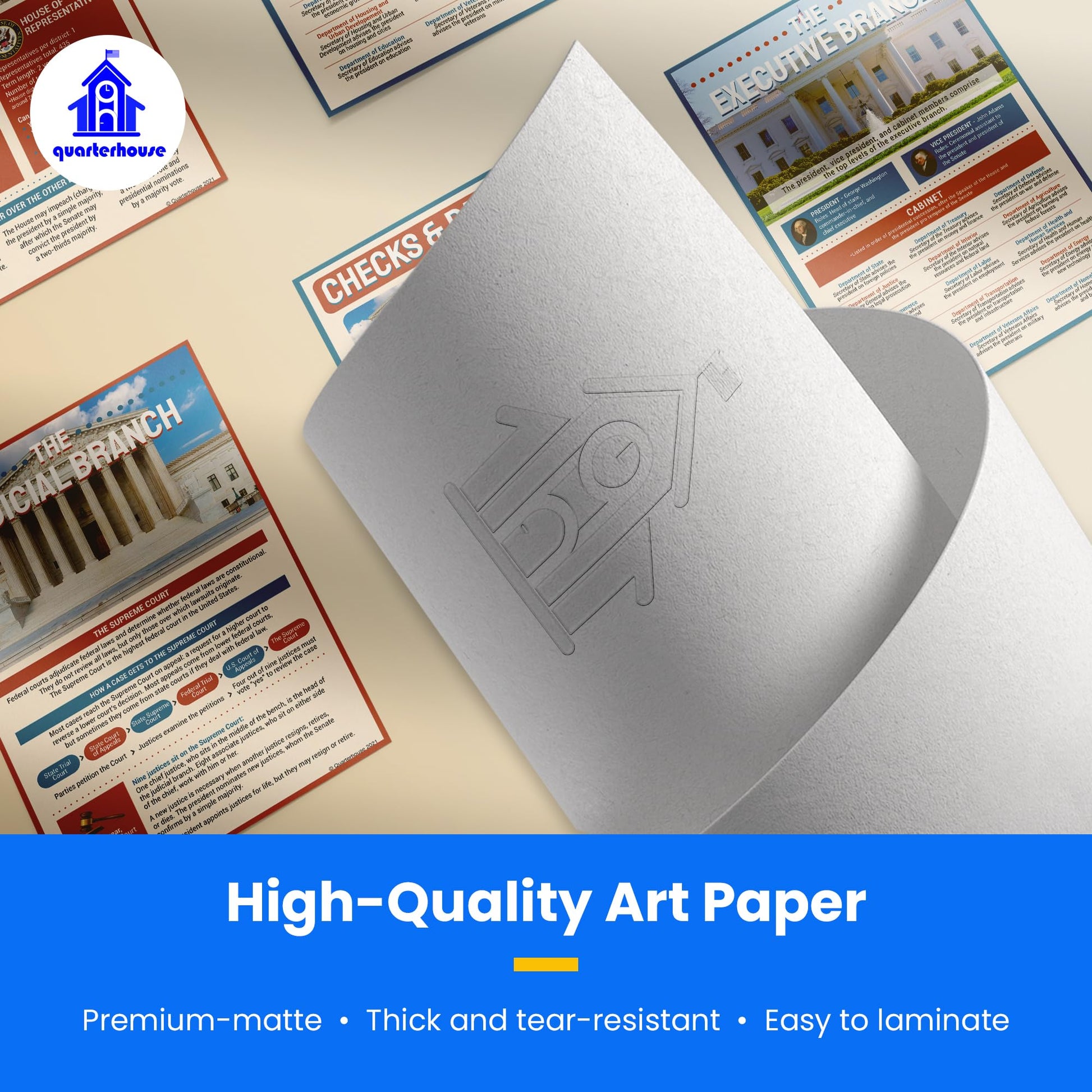 We print each poster on durable, high-quality paper that can withstand the rigors of daily classroom use. With lamination, Quarterhouse posters will last for years without fading or tearing. Additionally, the posters are easy to hang with adhesive strips or push pins, making them simple to display in your classroom.