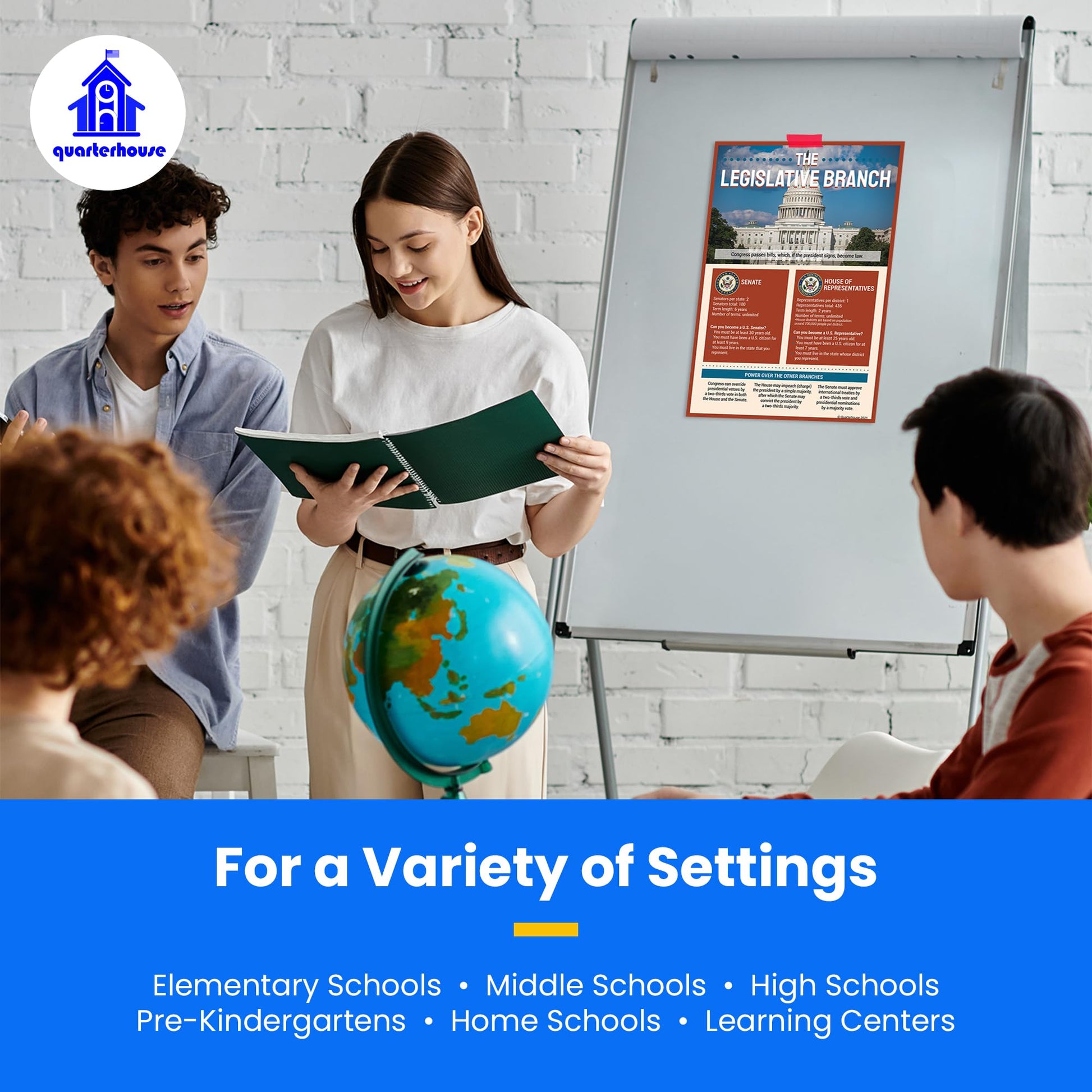 Quarterhouse Three Branches of US Government: Checks and Balances Poster Set, Social Studies Classroom Learning Materials for K-12 Students and Teachers, Set of 4, 12 x 18 Inches, Extra Durable
