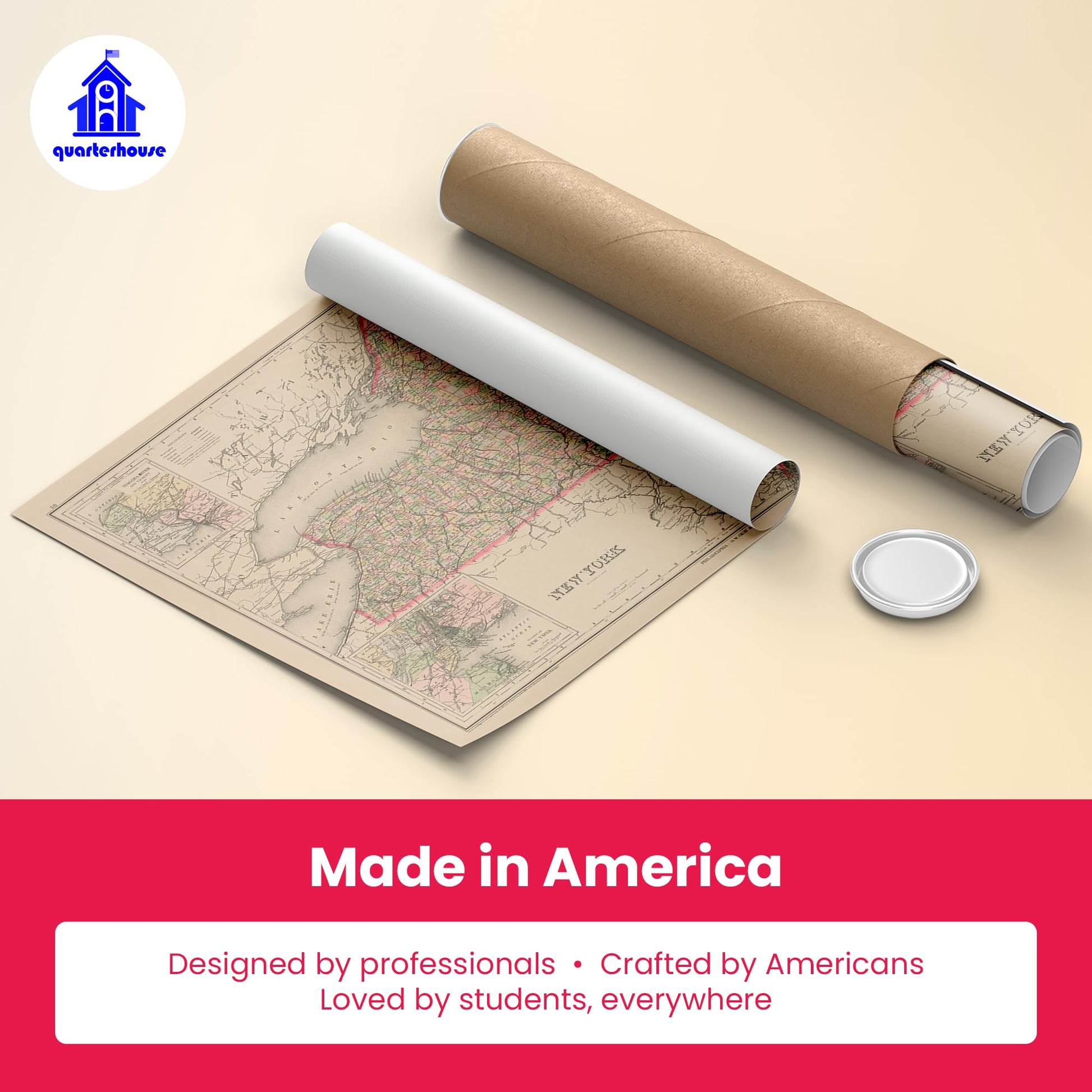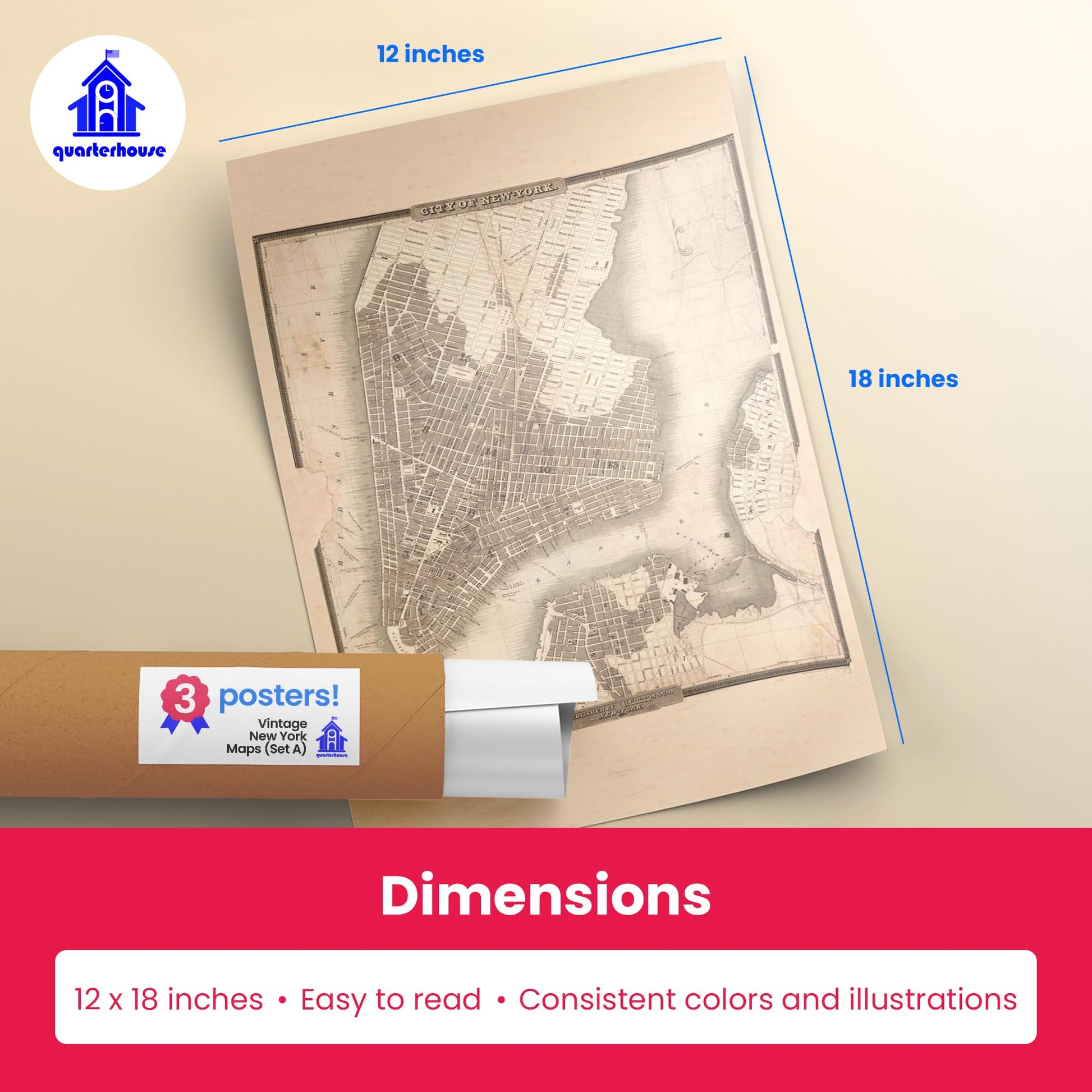 Quarterhouse Vintage New York Maps (Set A) Poster Set, Social Studies Classroom Learning Materials for K-12 Students and Teachers, Set of 3, 12 x 18 Inches, Extra Durable
