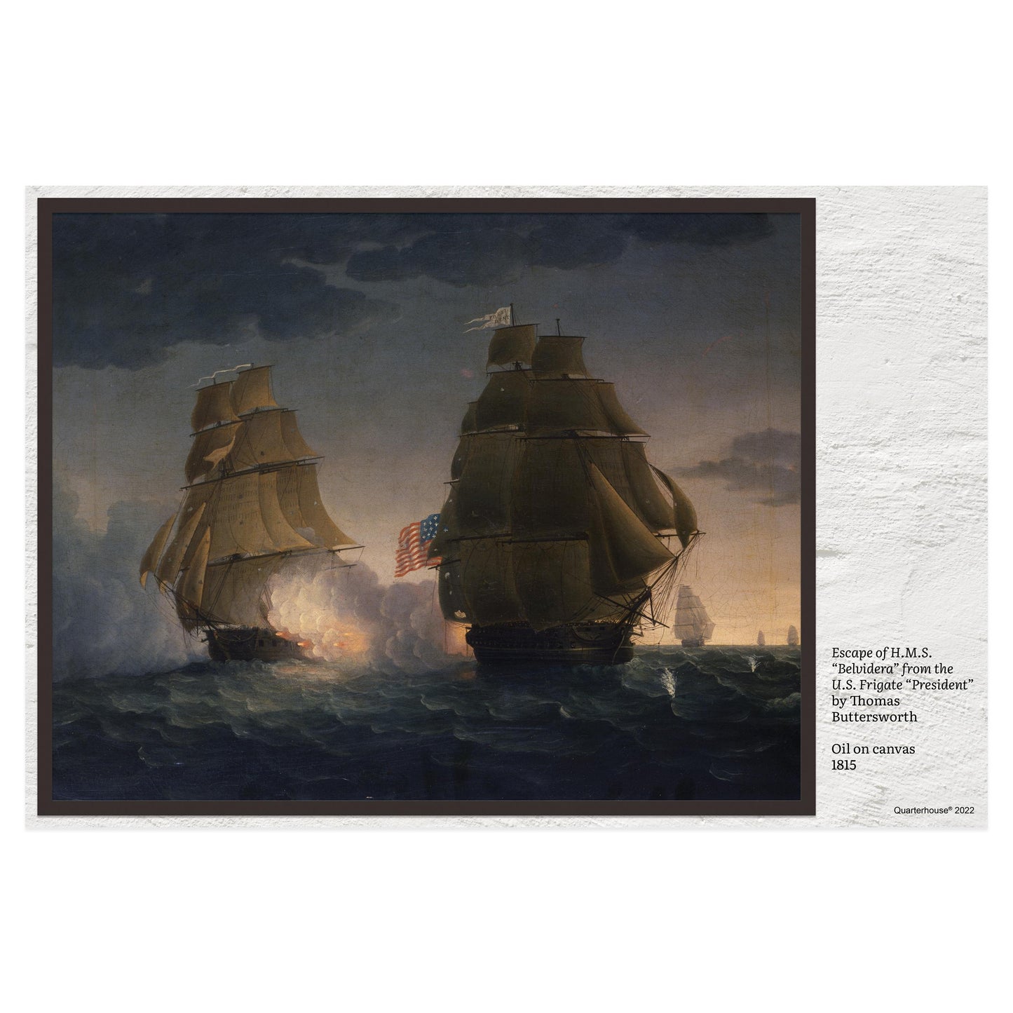 Quarterhouse War of 1812, 'Escape of H.M.S. Belvidera from the U.S. Frigate President' Poster, Social Studies Classroom Materials for Teachers
