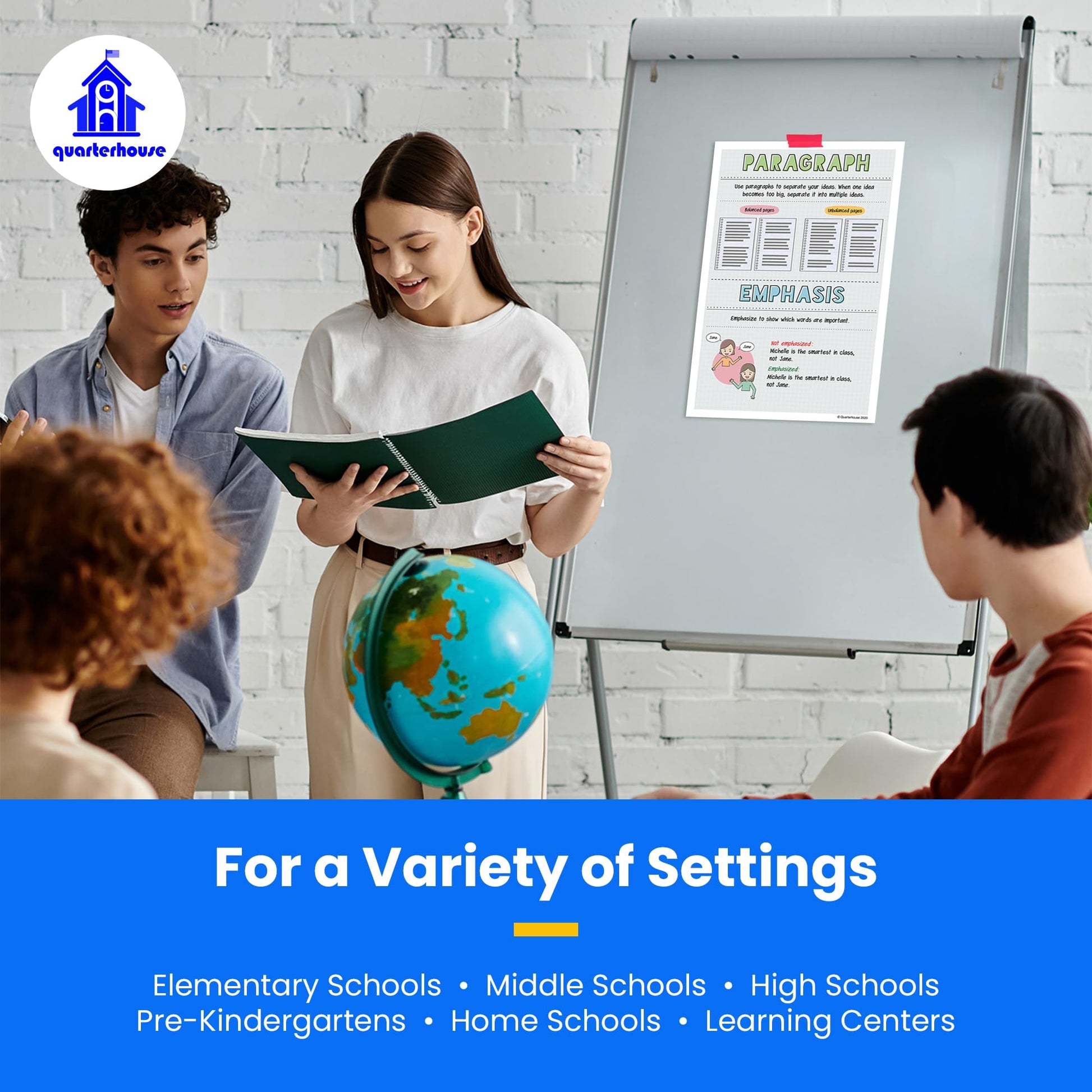 Quarterhouse Writing and Grammar Poster Set, English-Language Arts Classroom Learning Materials for K-12 Students and Teachers, Set of 9, 12 x 18 Inches, Extra Durable