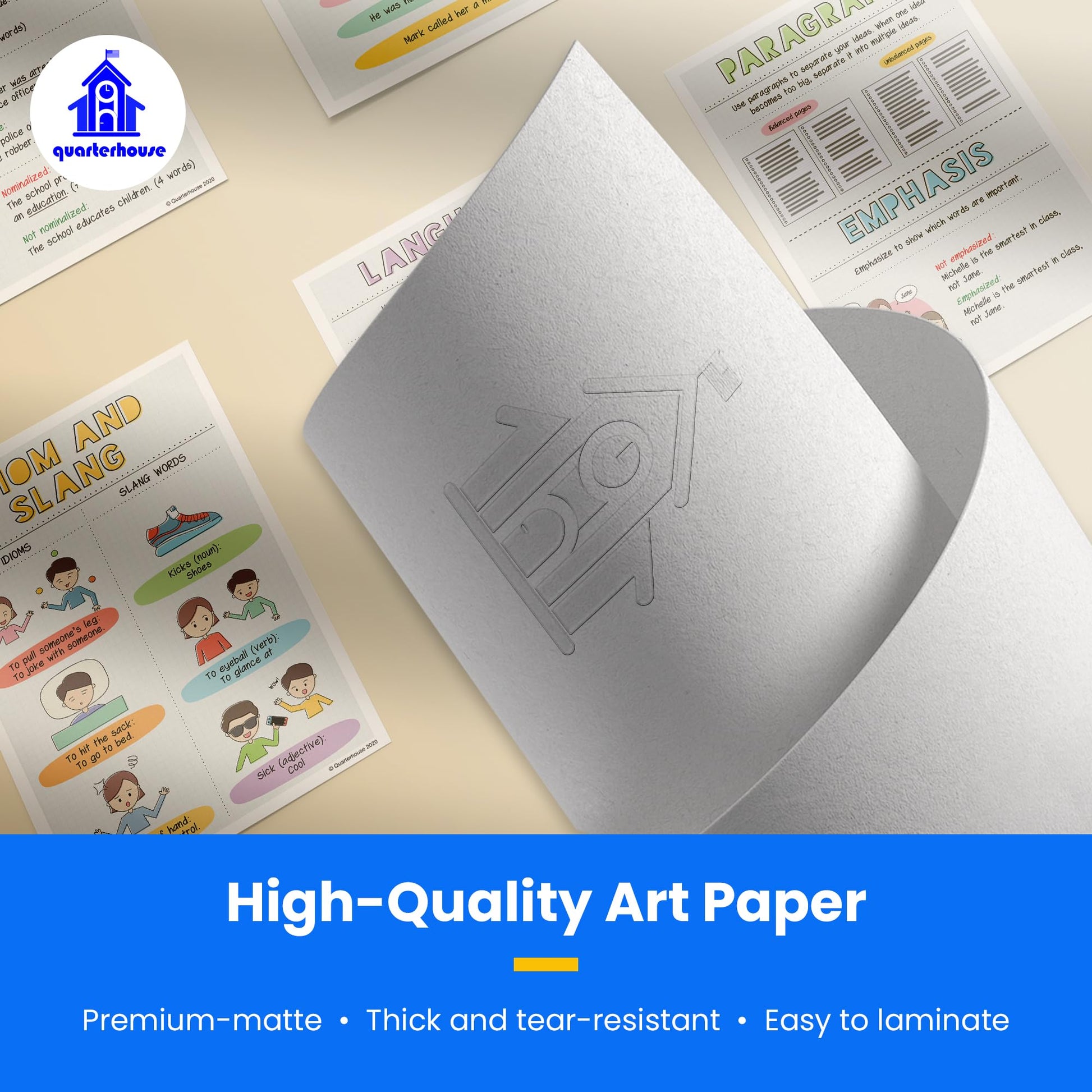 We print each poster on durable, high-quality paper that can withstand the rigors of daily classroom use. With lamination, Quarterhouse posters will last for years without fading or tearing. Additionally, the posters are easy to hang with adhesive strips or push pins, making them simple to display in your classroom.